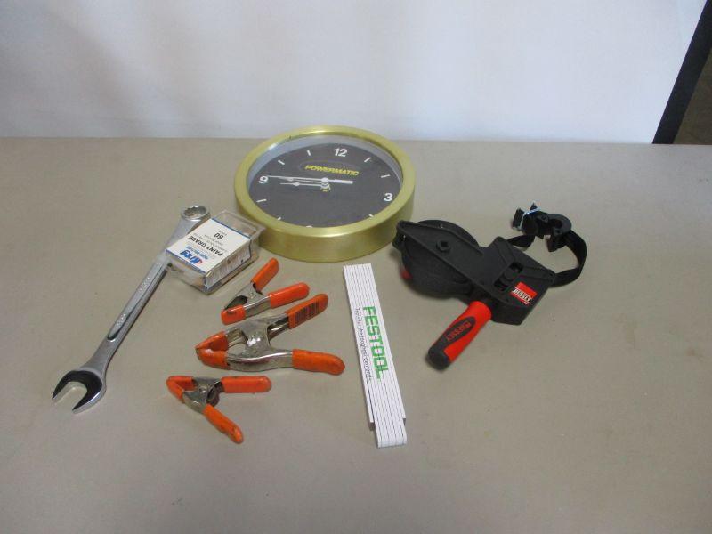 Lot 74 - Clock - Clamps - Wood Ruler - Bessy Strap