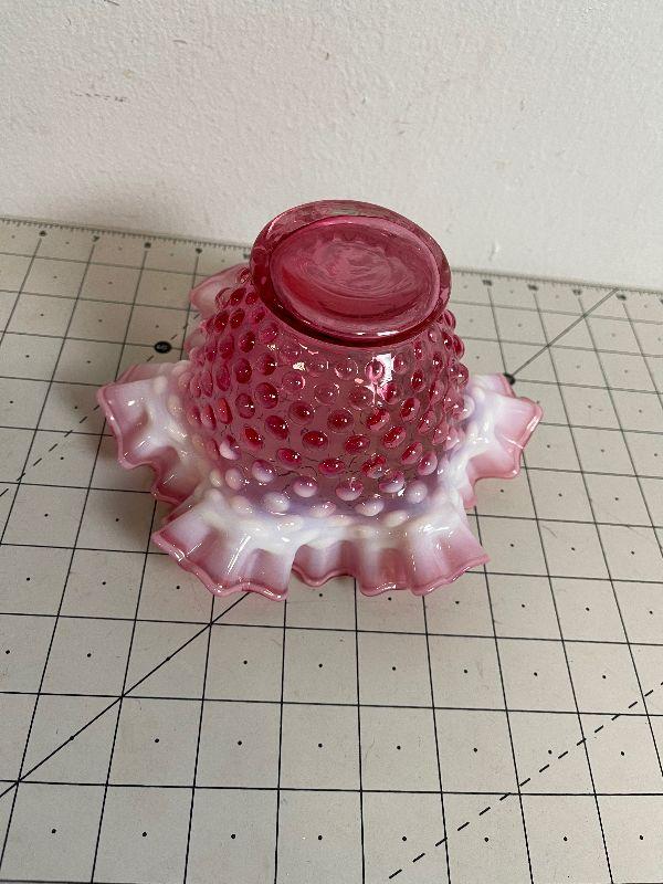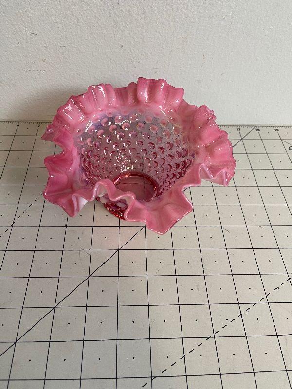 Lot #74 Cranberry Fenton Iridescent  Bowl with Ruffle Edge