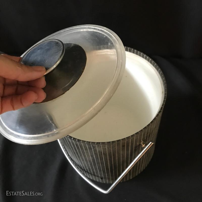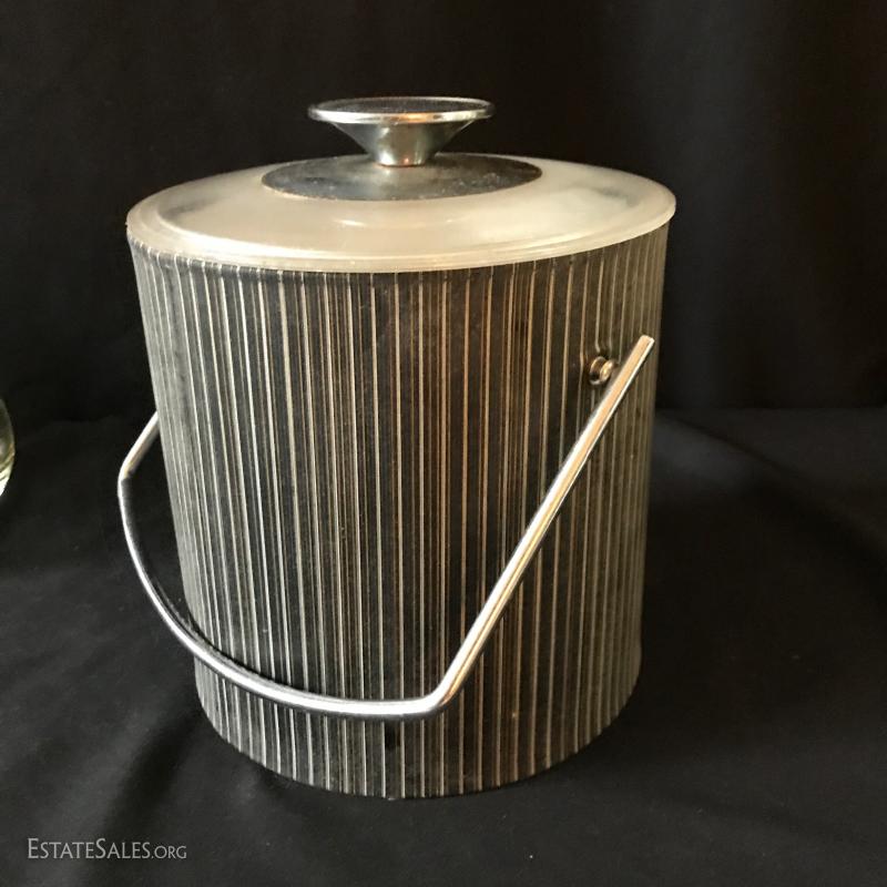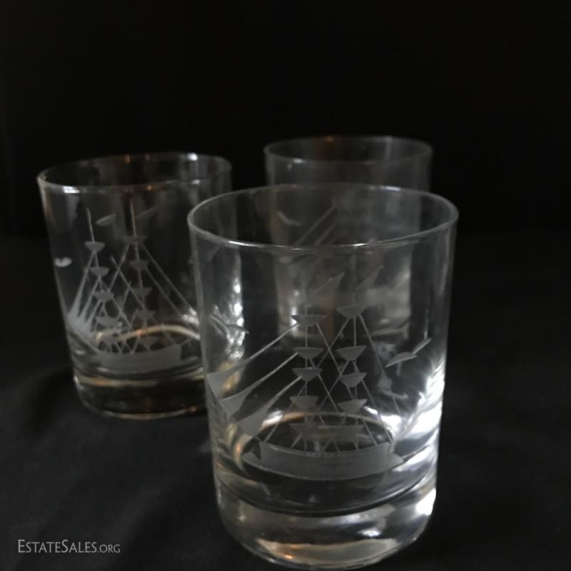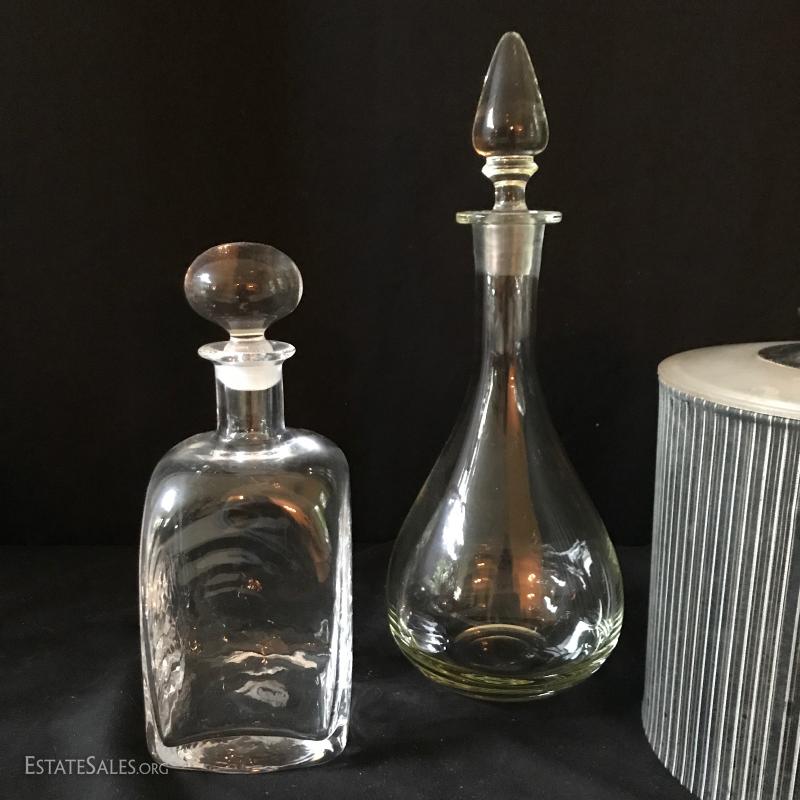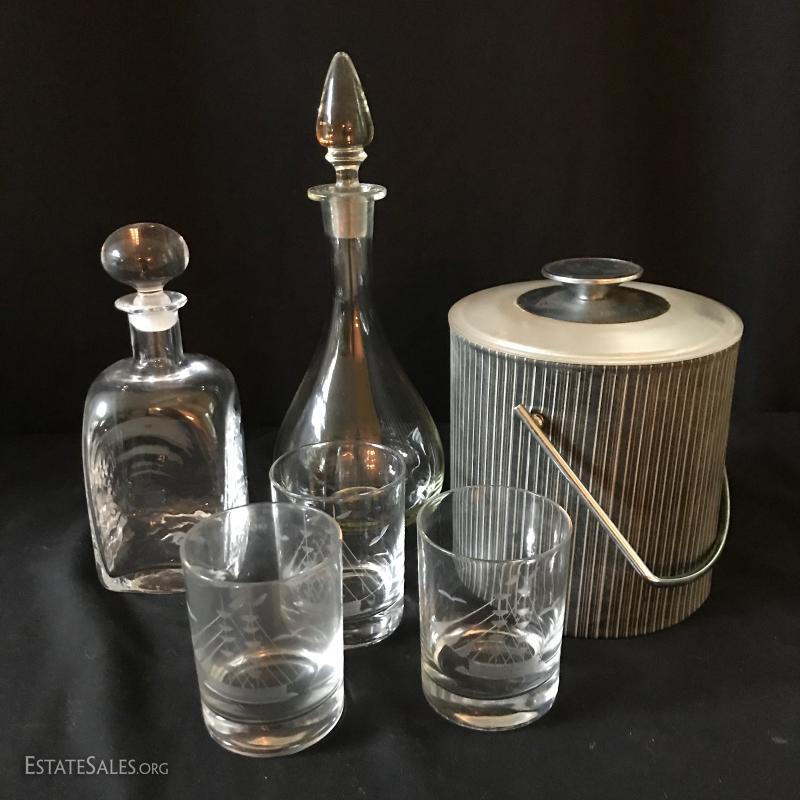Great barware for your home. Includes two glass decanters, vintage ice bucket, Official Mixer's Manual book and three rocks glasses with etched sailboats. MCM ice bucket is 9" tall. Tallest decanter is 14"tall. Shipping available or local pick up in Flat Rock, NC.