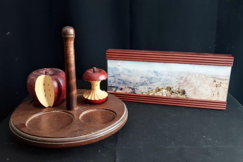 Miscellaneous wooden collectibles. Please see all pictures for content of the lot, condition of the lot, and measurements if taken. Pictures are the best representation of the items listed and items are untested unless indicated in description. Thank you for looking and have fun bidding!