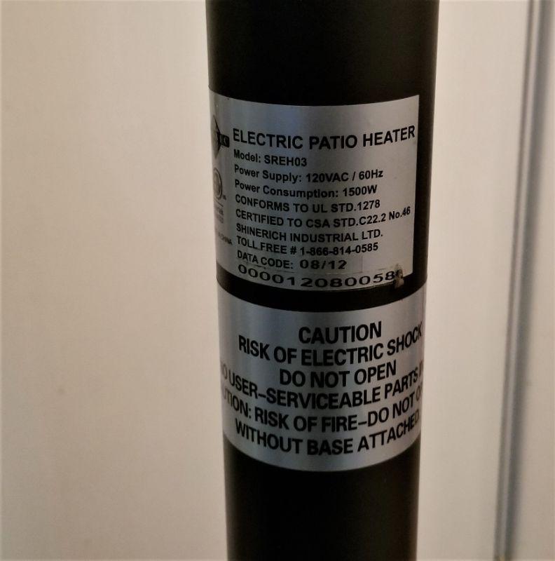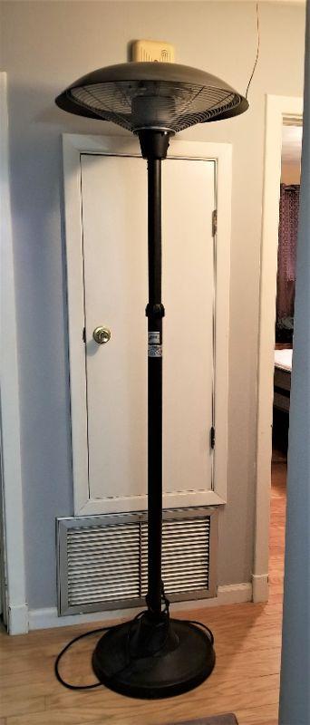 Very nice electric patio heater - telescopic - works great. 77" high fully extended (as shown). Gently used.