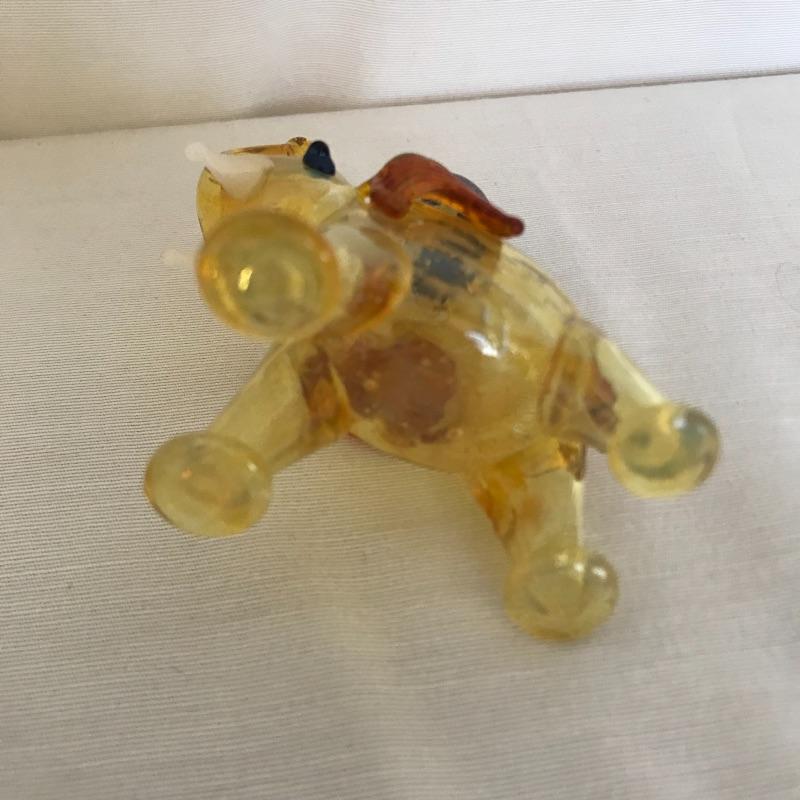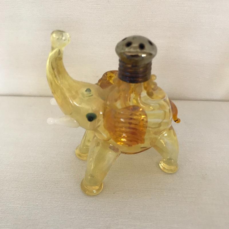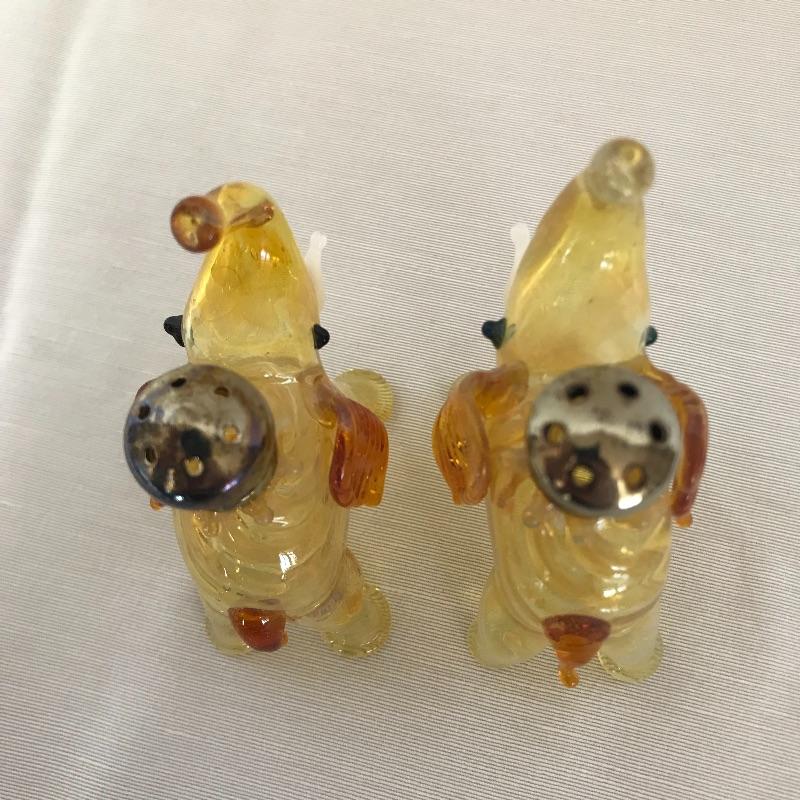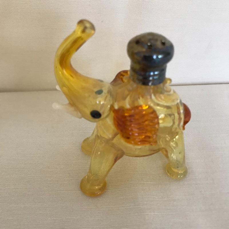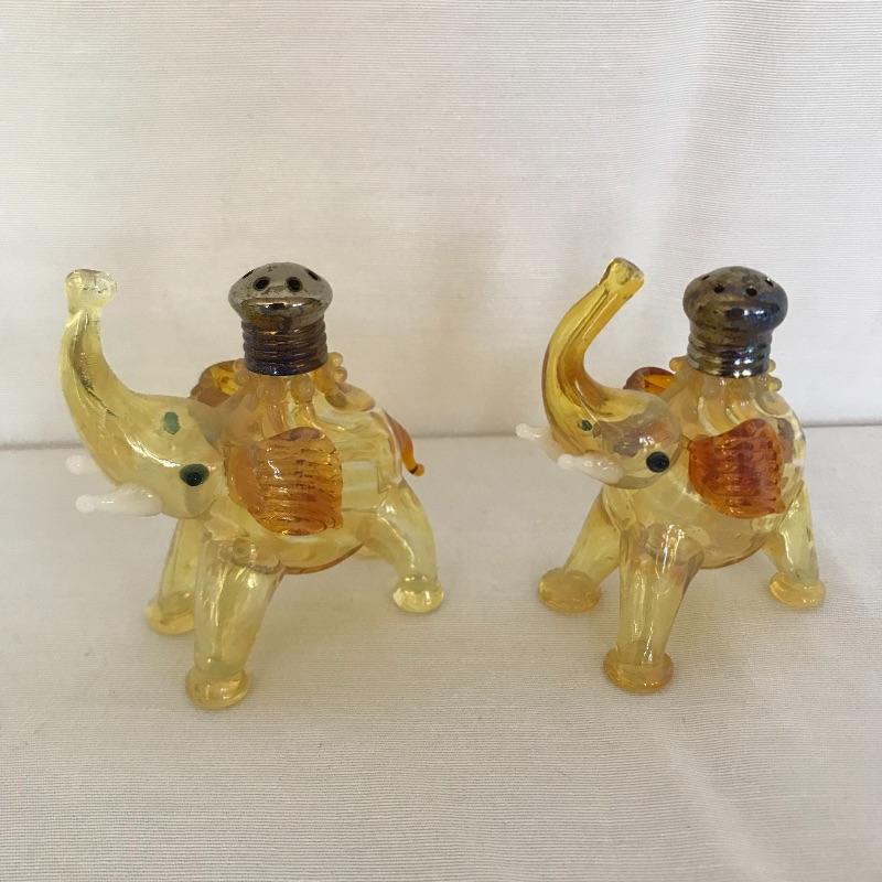 This charming pair of blown glass elephant salt and pepper shakers is unique and made of borosilicate glass in a gorgeous amber yellow-orange. Approx. 3” tall. Gazelle Glass studio has been in operation since 1976 in the foothills of Philomath, Oregon. Shipping available.