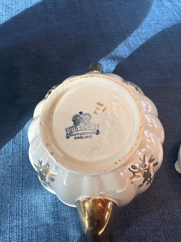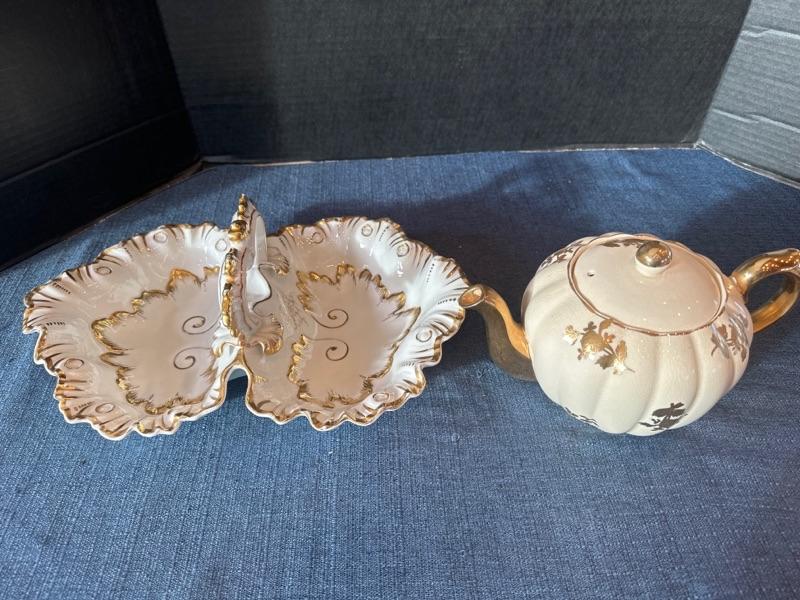 Porcelain basket, porcelain tea pot Gibson staffordshire