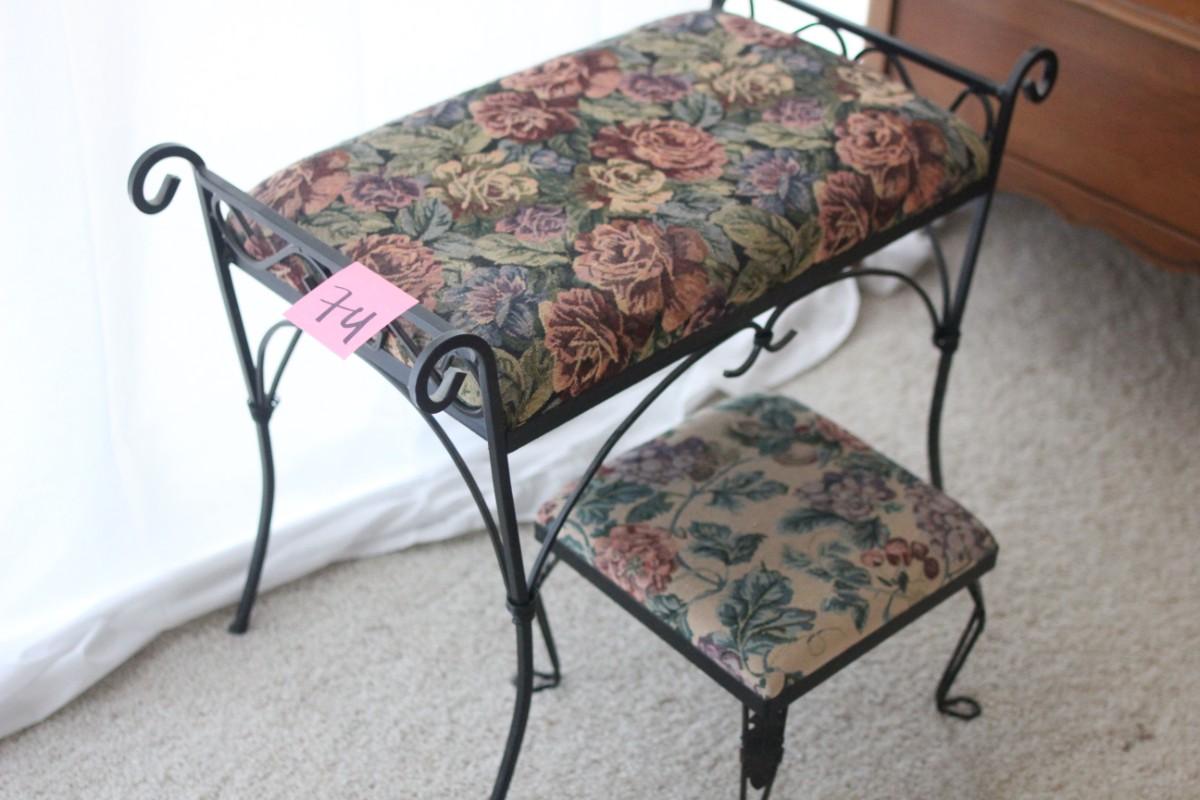 Lot 74 Iron Vanity Bench & Footstool