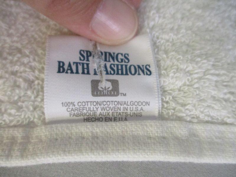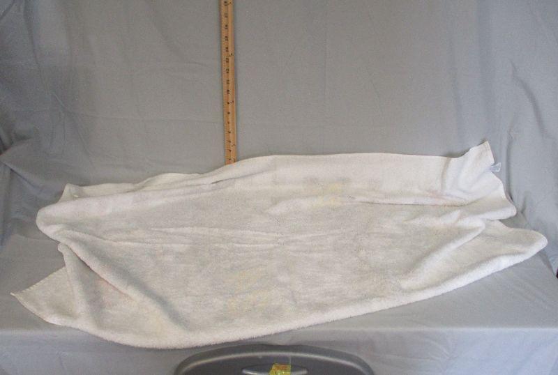 This towel doesn't appear to have been used. The pattern on one have is repeated on the other half. It measures about 46" x 27.5" and is 100% cotton.