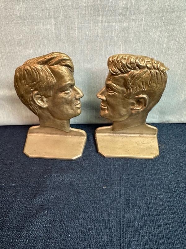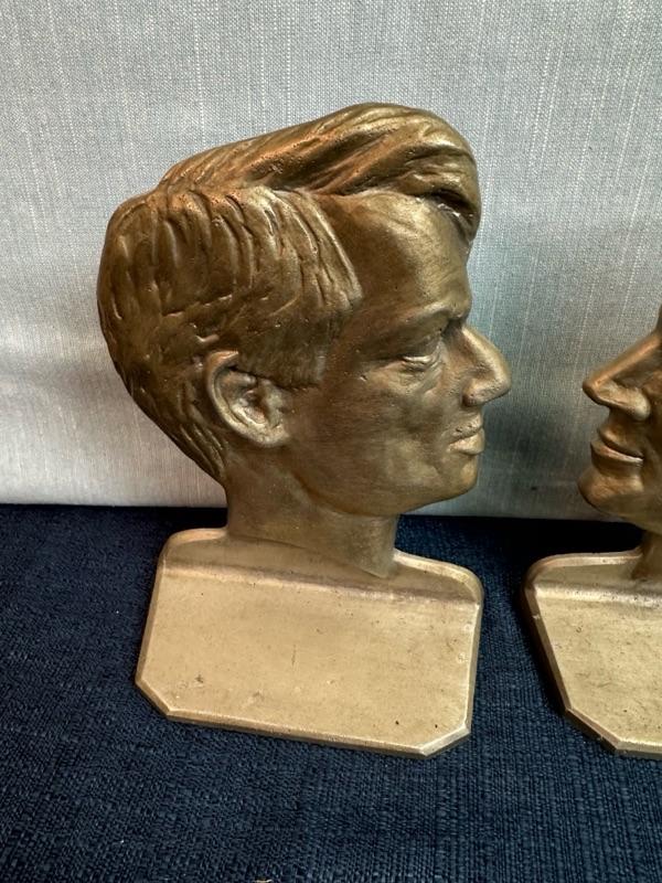 Lot 74 John Kennedy and Robert Kennedy metal book ends approximately 7 1/2 inches tall