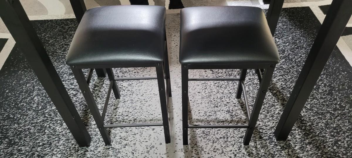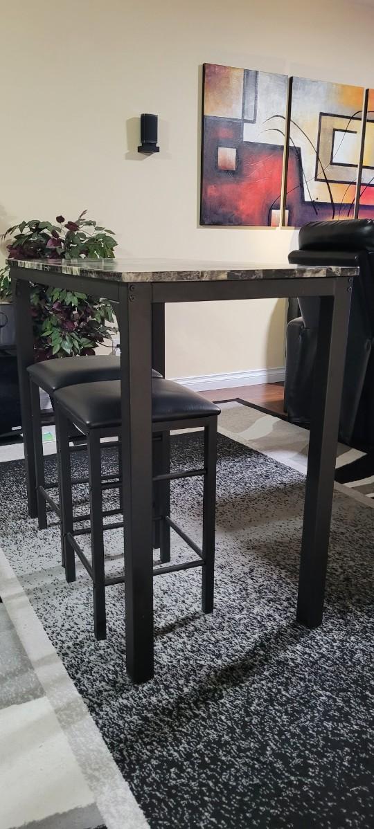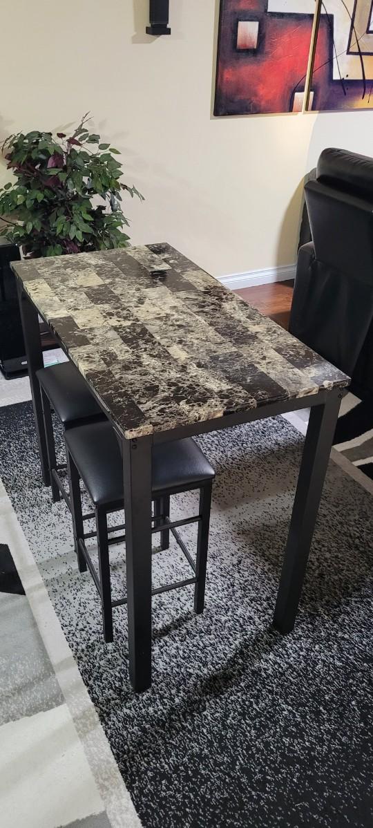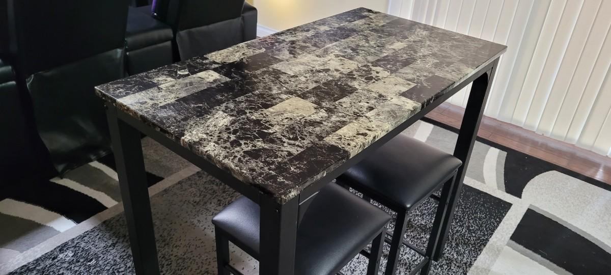 Lot 74: Kitchen Table w/ Faux Marble Top and (2) Stools
