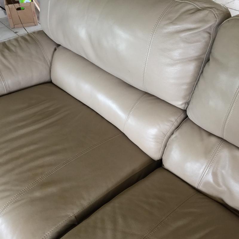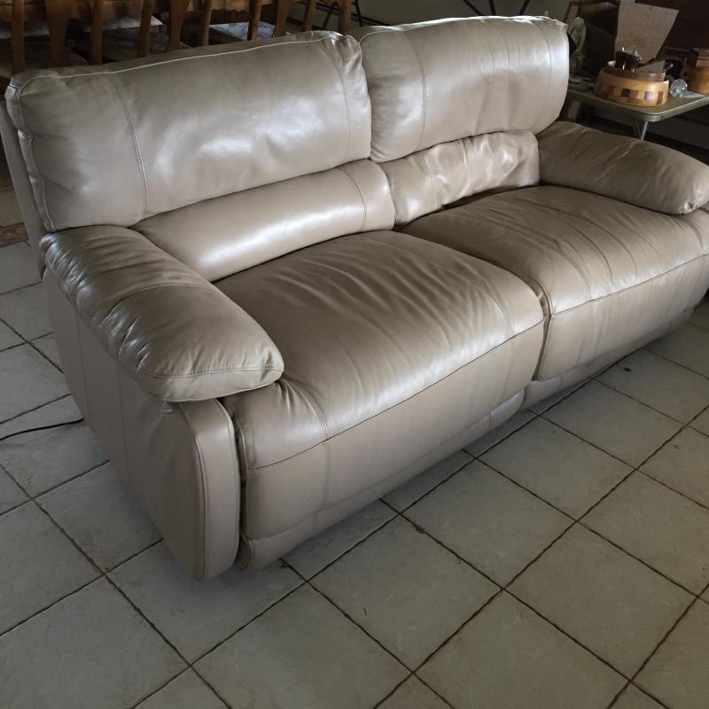 Luxurious electric leather reclining sofa. Each half reclines on its own. Left side of sofa appears to have a bent spring inside. Sofa measures 81” x 39” x 38”. Local pickup only. Bring help as sofa is heavy and will need to go down outside stairs.