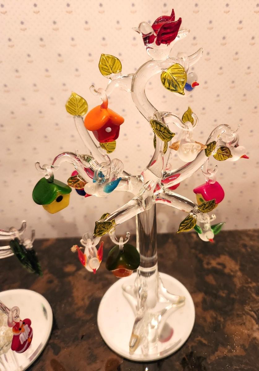 Lot of 2 pretty glass Christmas trees - about 25 ornaments in all. Both on mirrored bases - contemporary. Tallest is 8" tall.