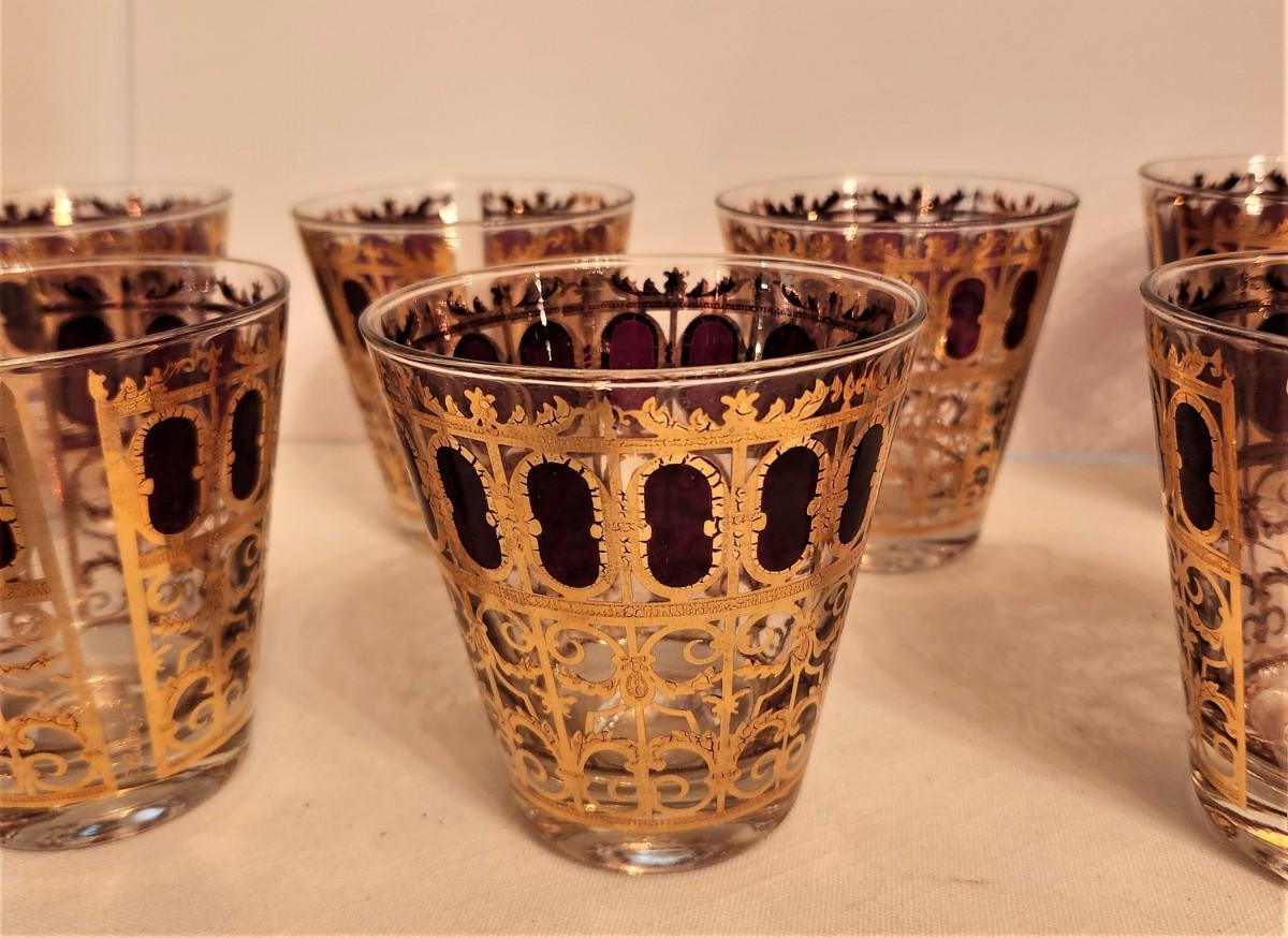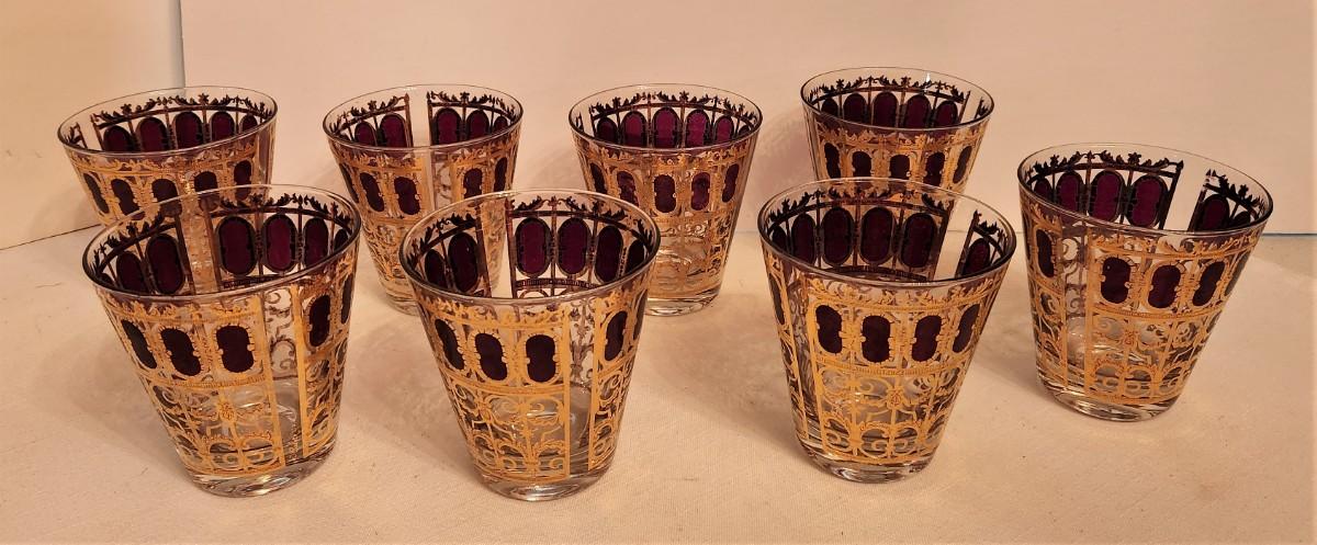 Lot #74  Lot of 8 Mid Century Culver Rocks Glasses - Cranberry Scroll