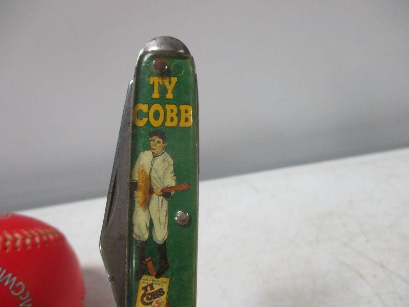The lot you are bidding on has a Mark Mcgwire Home Run King Baseball 1998 and Ty Cobb Novelty Knife. Please review photos for condition