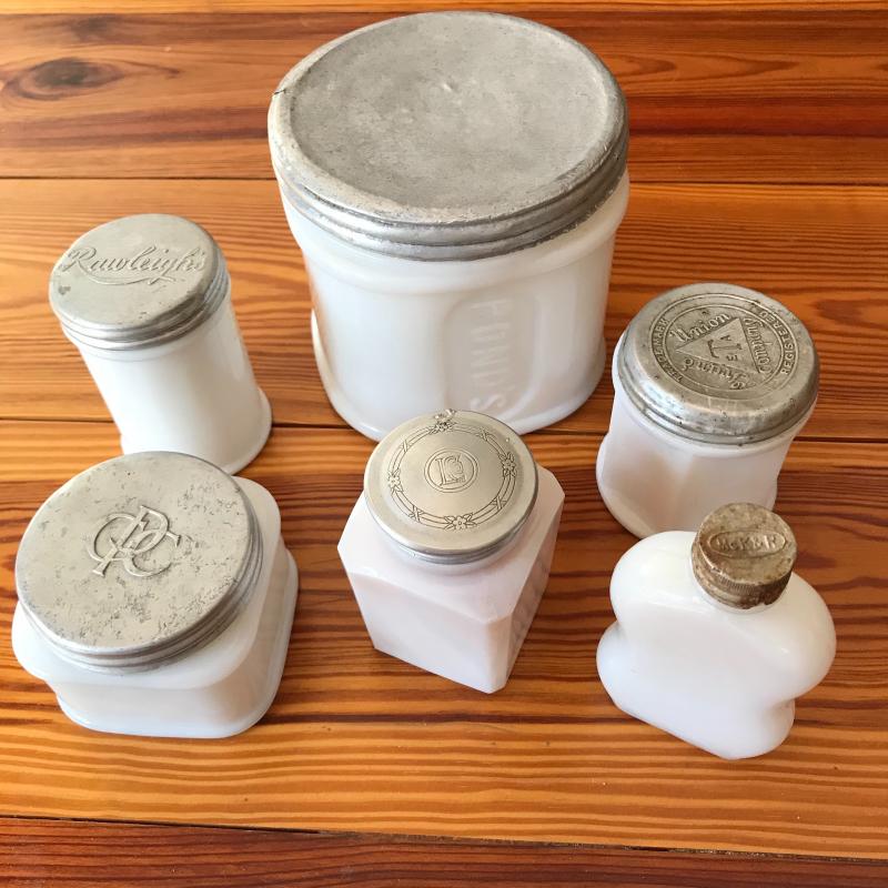 Lot 74 - Metal-Lidded Milk Glass Jars