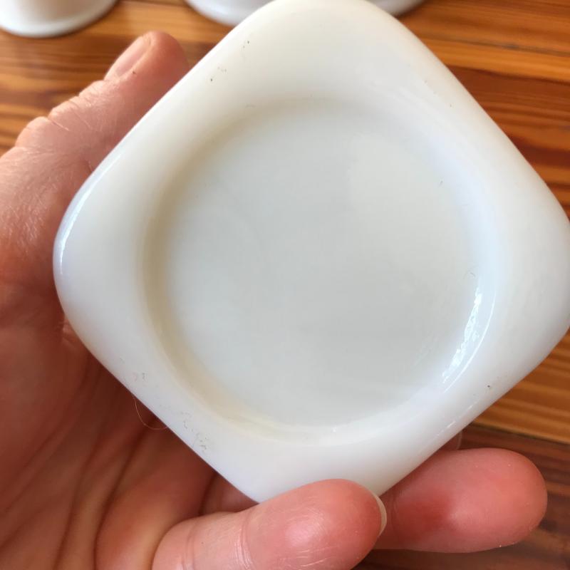 Six milk glass jars in various shapes and sizes. Tallest one is 3.75” tall. Shipping available or local pickup in Asheville, NC.