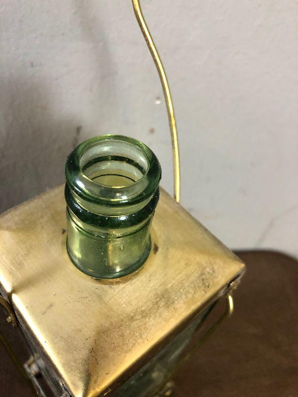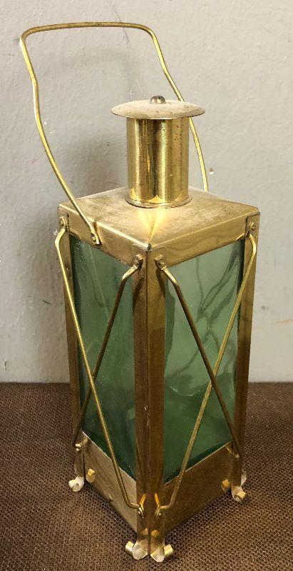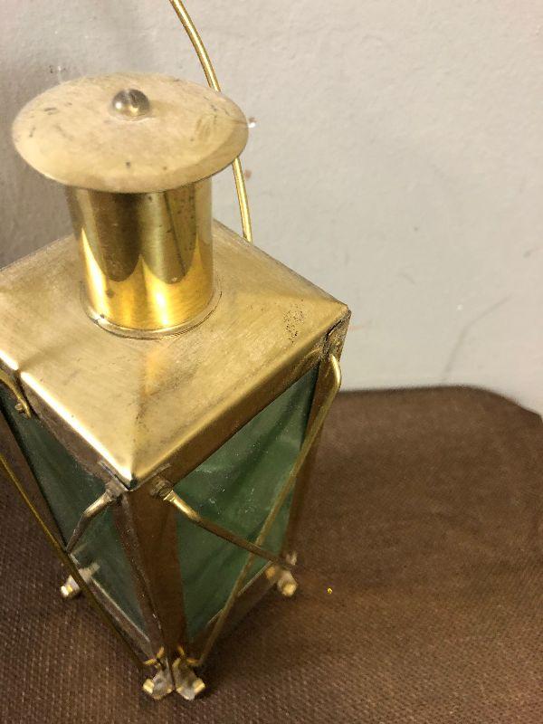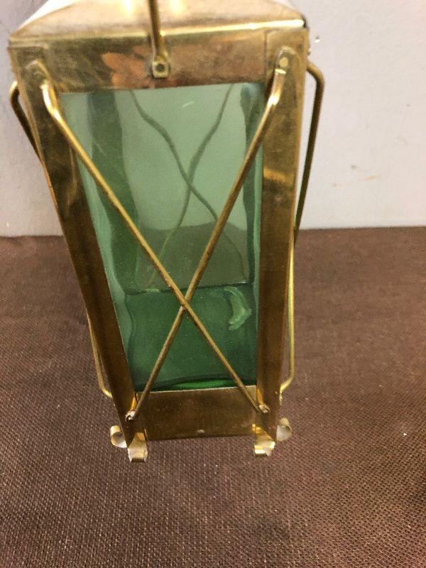 Green Glass and brass tone - Lantern faux style, Music Box does work but not predictably