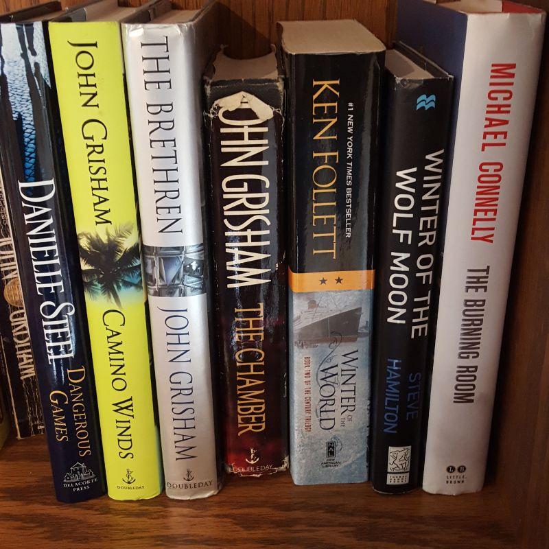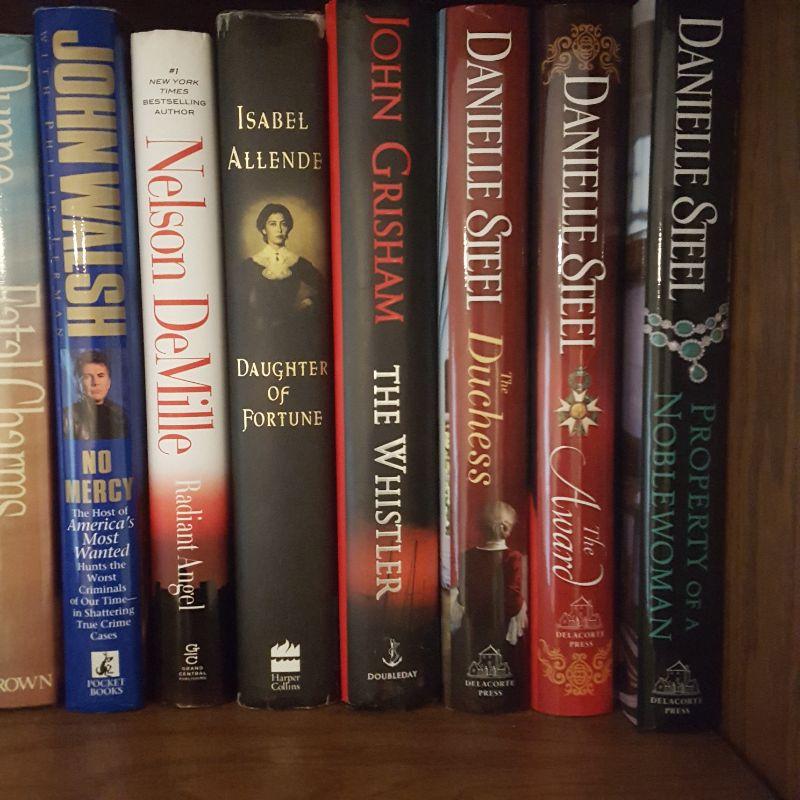 A wide range indeed! Come and get cozy with this novel lot! Plenty of books to choose from. This lot is mostly hardback books, with a few paperback books in there. Titles are in the pictures. Author's range from Danielle Steele to James Michner to Jane Austin and John Grisham! Something for everyone! Don't forget the book light that attaches to your book for that late night reading! Bookshelf not included! Local pick up only.