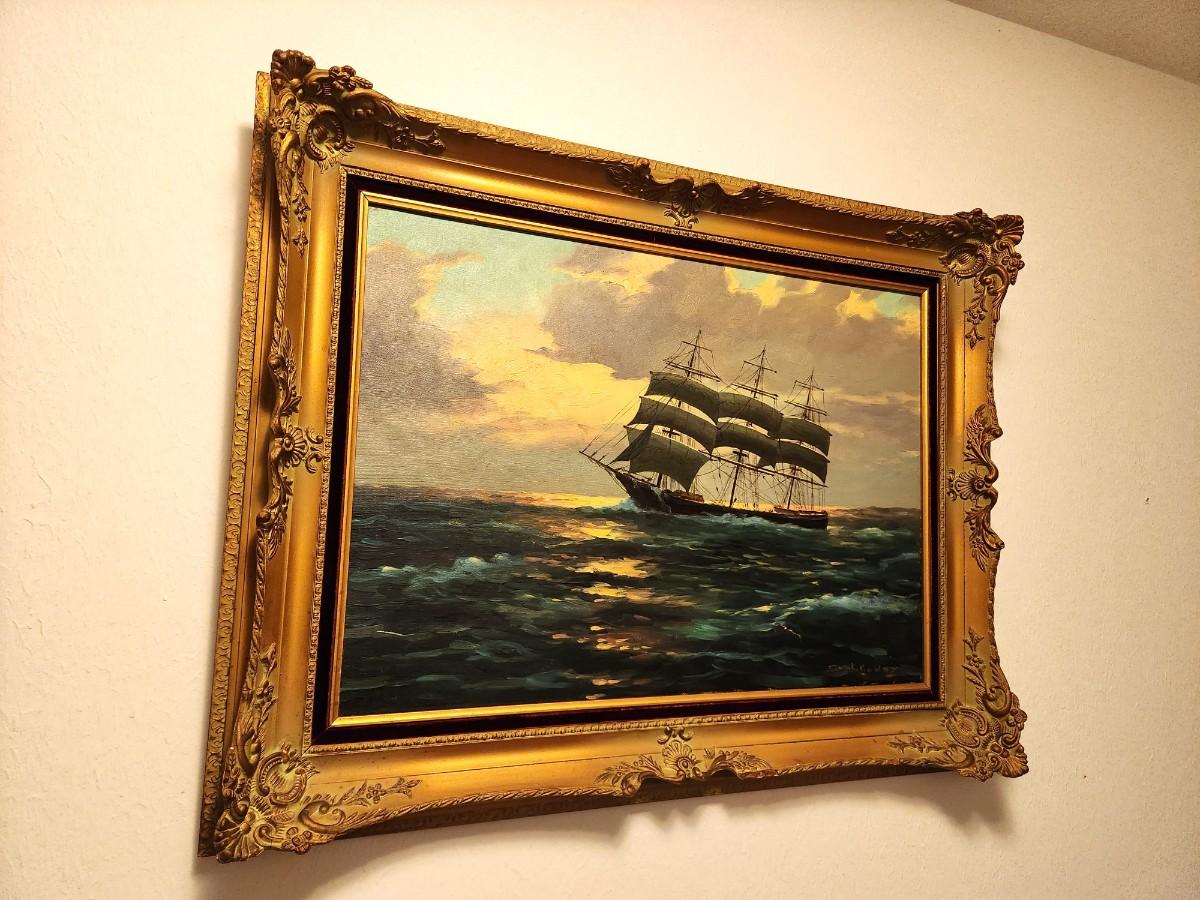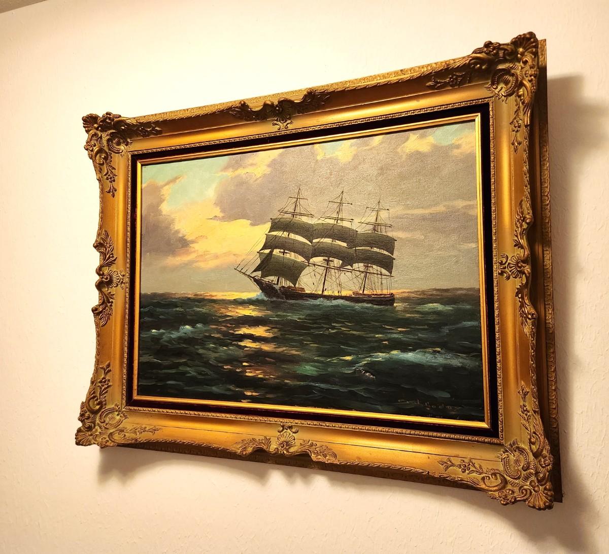 Lot #74 Original Painting - Ship at Sea - Handsome frame