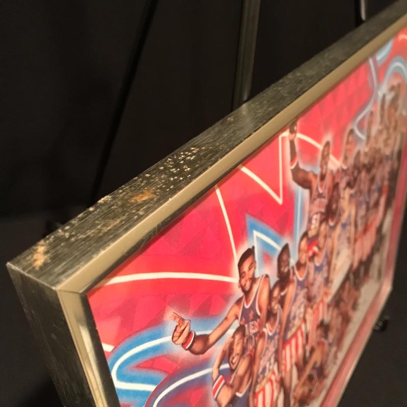 Great team poster with The Harlem Globetrotters appears to be signed by James “Twiggy” Sanders. The poster appears to have been folded in the middle before being placed in its silver metal frame. Frame measures 16” x 13.25”. No COA. Shipping available.