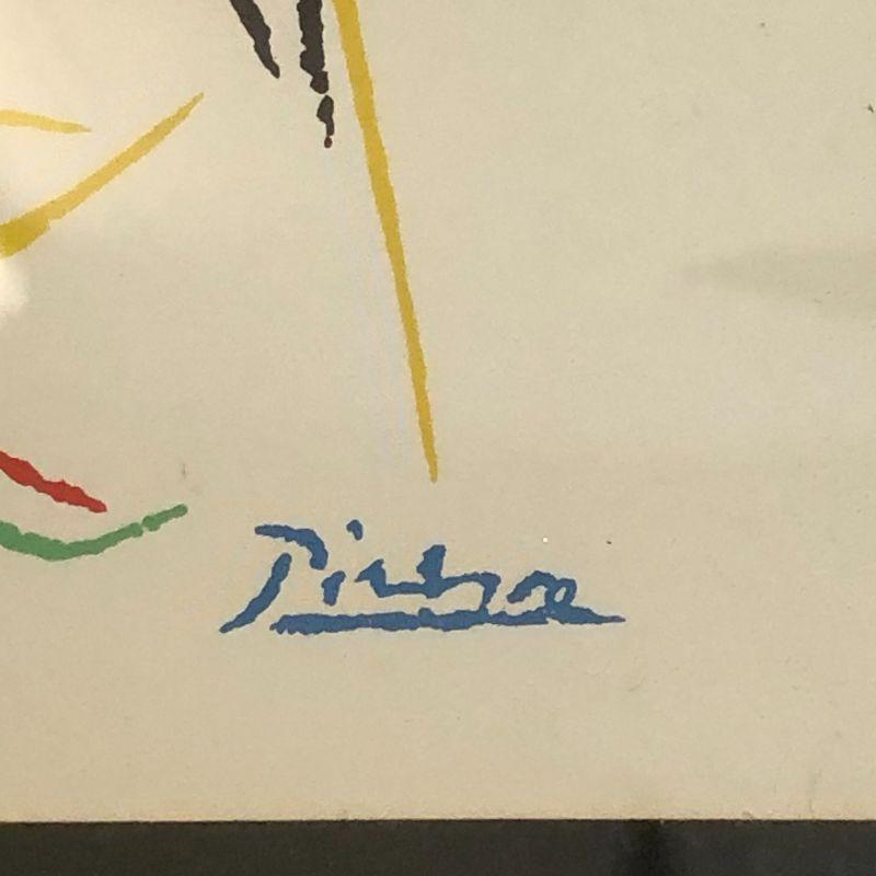I'm not a Picasso fan, but I like this one. It is matted and framed, but the framing could use some help in the back. It is 14.25" x 11.75".