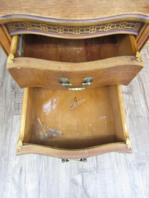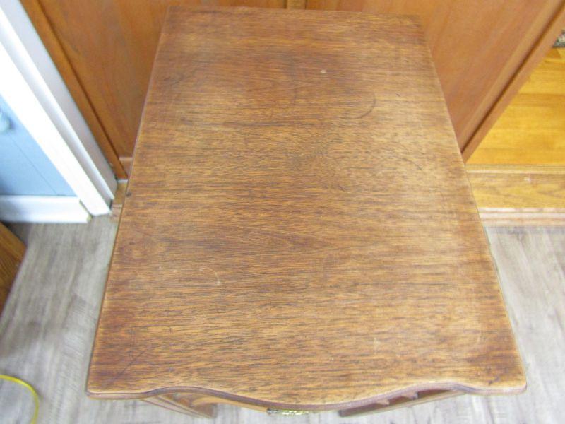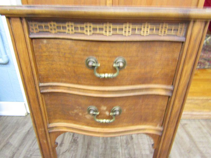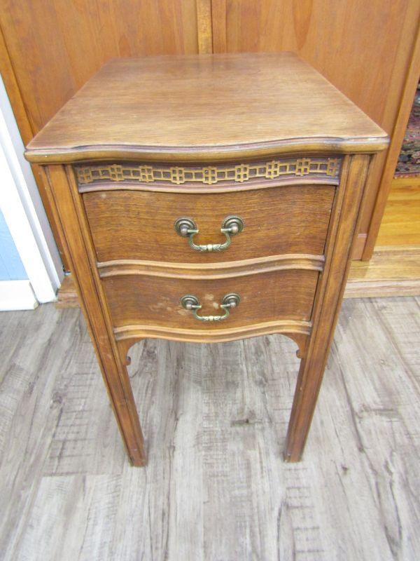 2 DRAWER SIDE TABLE IN GOOD CONDITION, MEASURES 24-1/4"H x 13-1/2"W x 18-1/2"D