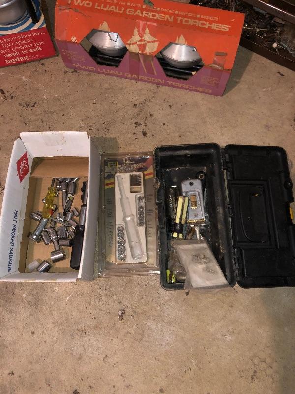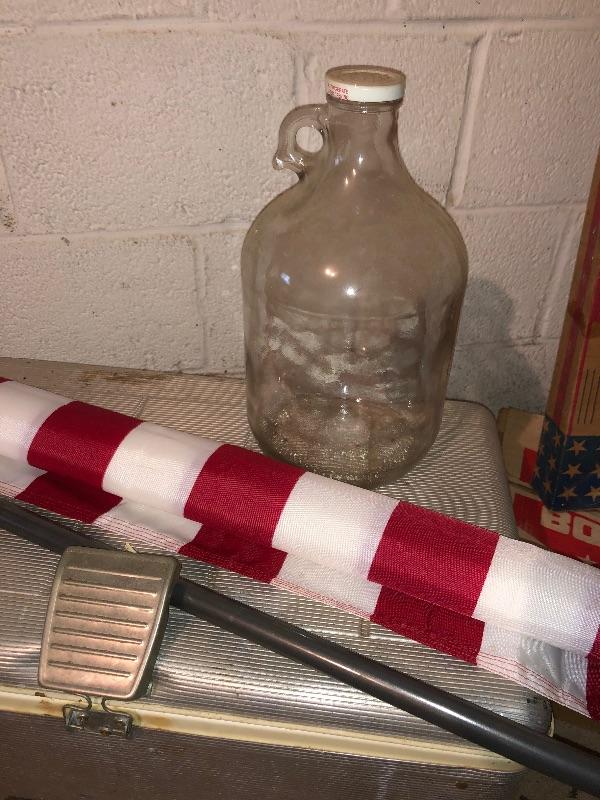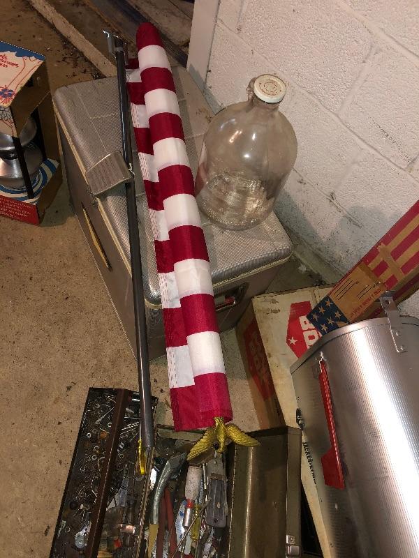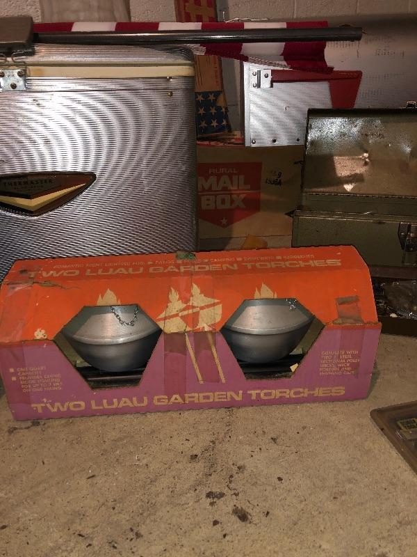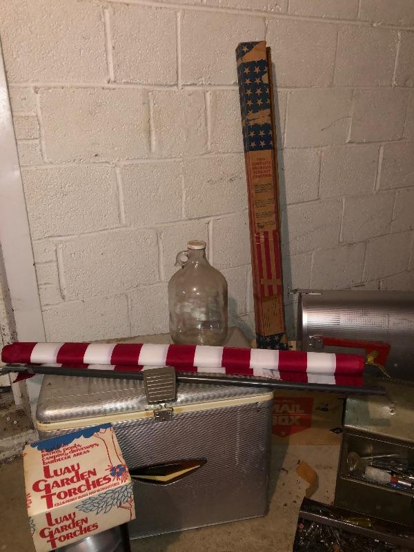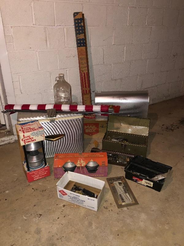 Vintage Cooler, New Flag, New Mailbox, Toolbox & Tools, Vintage Jug, Lantern & 2 Garden Tourches