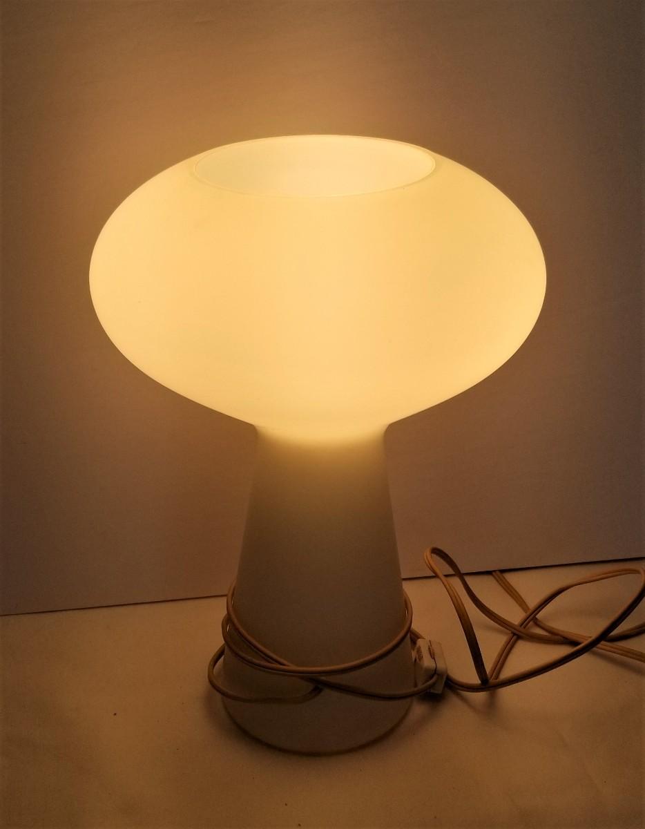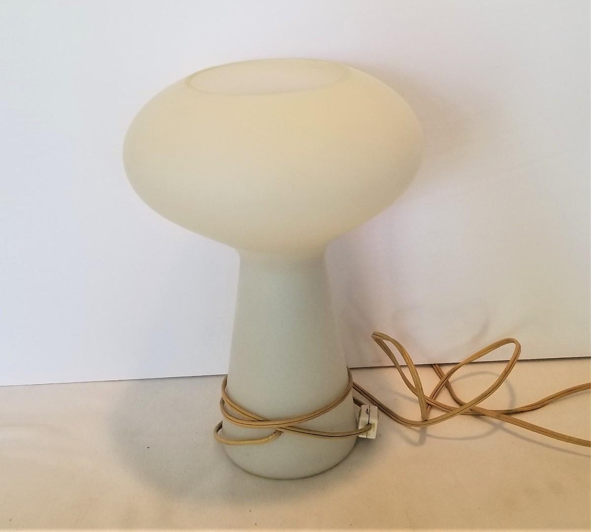 MidCentury vintage frosted glass lamp - good working condition. "Mushroom" form. Switch on cord. 11.5" tall.