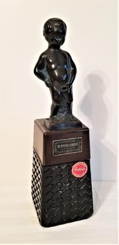 Cute vintage "Little Whizzer" bar dispenser. Battery operated. Glass base - made in Japan. 13" tall. Mannequin on top is plastic. No battery - we don't know if it works. I would buy this more for decoration than for function.