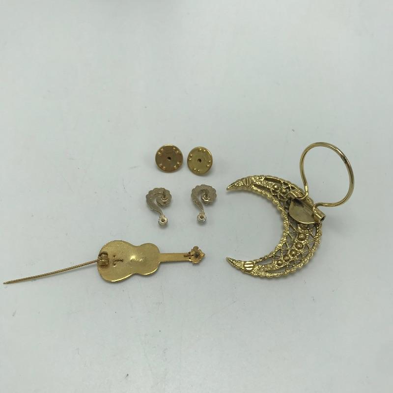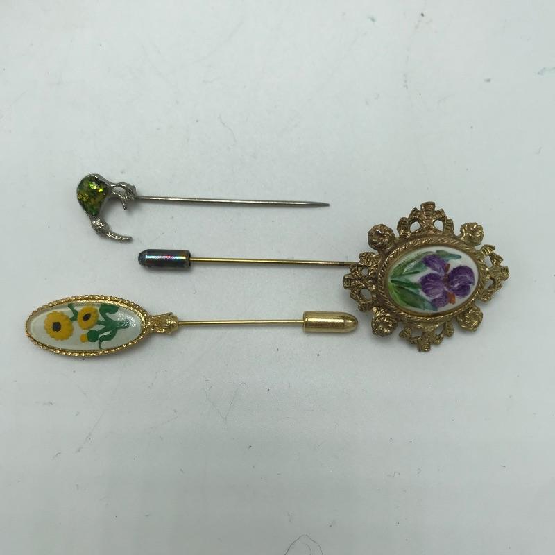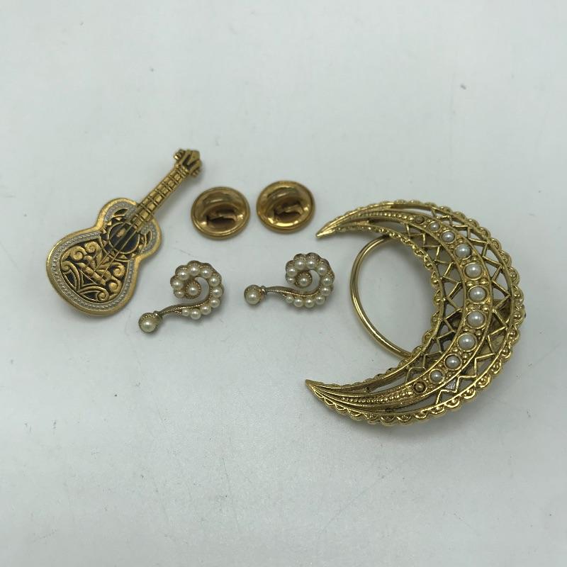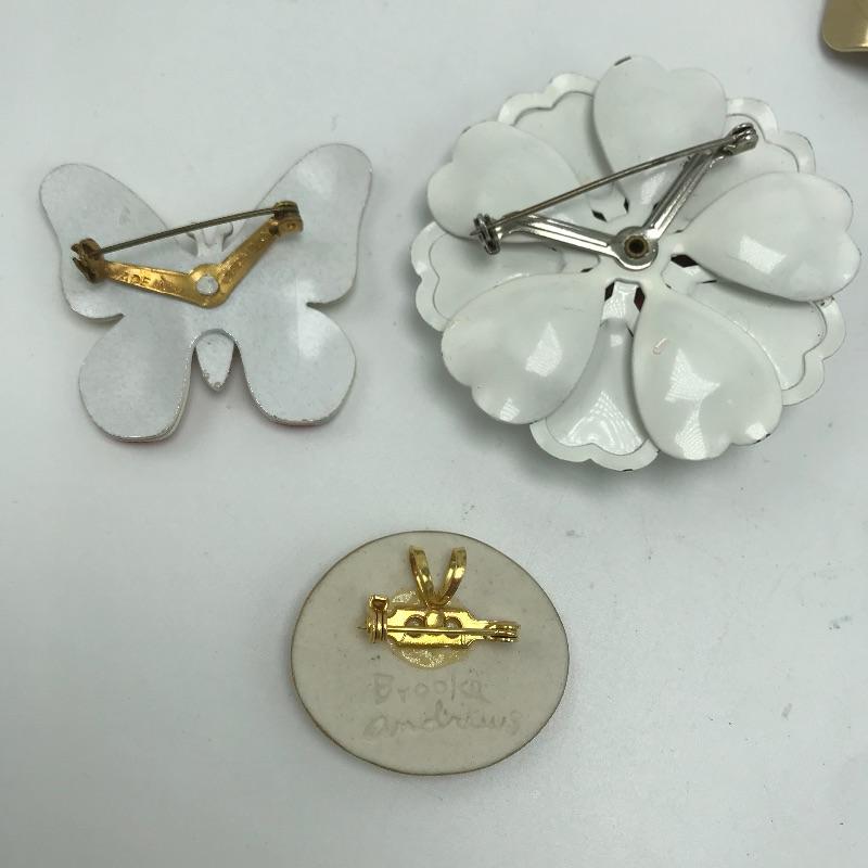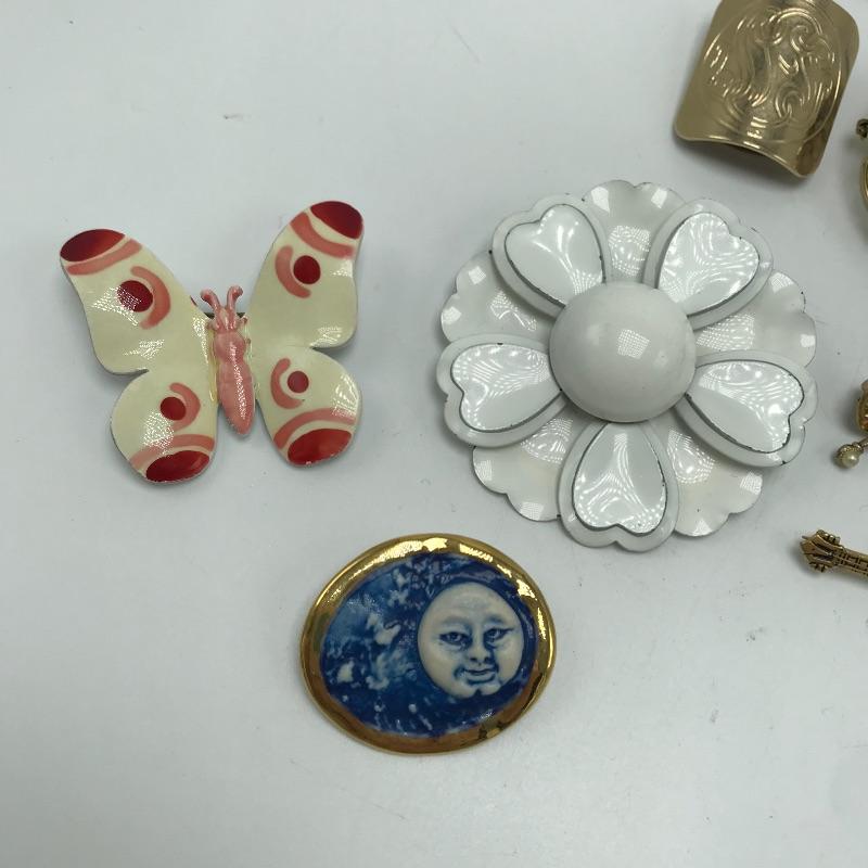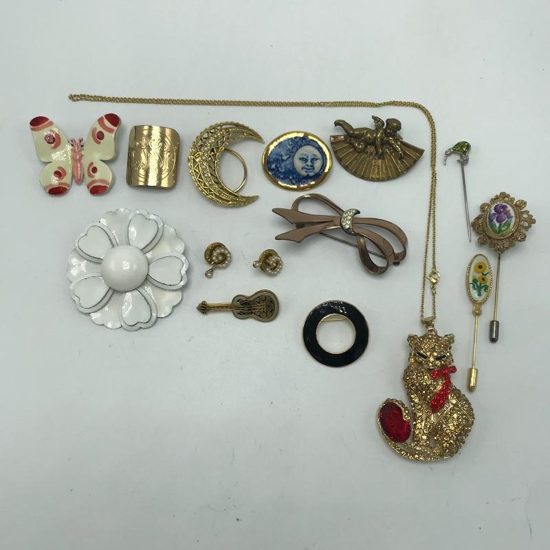 Sweet collection of vintage and vintage styled pins. Pins are made of various metals, the final two pictures are of the backside of the guitar and the yellow flower pin.
