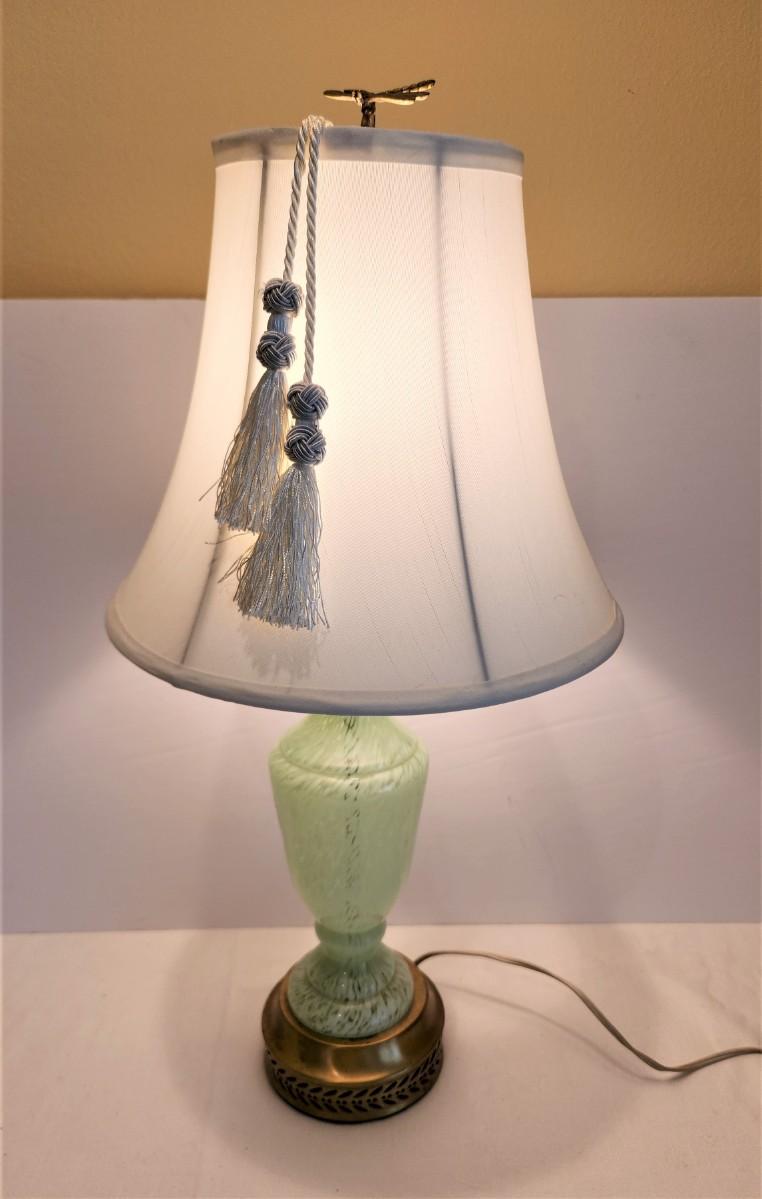 Lot #74 Vintage Table Lamp with Opalescent Green Glass base