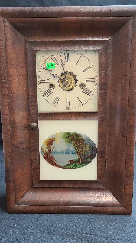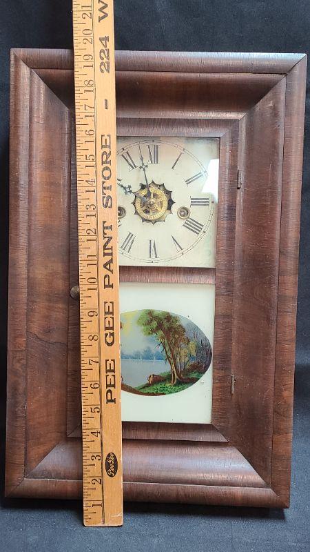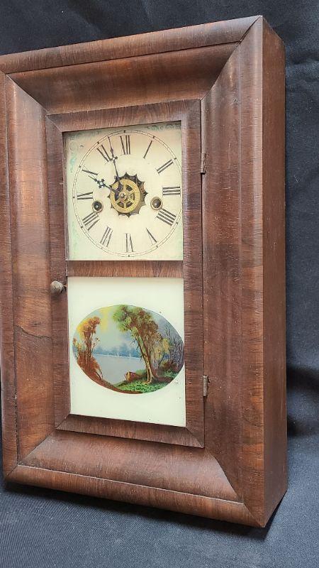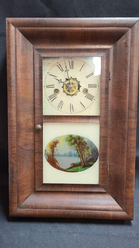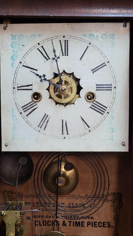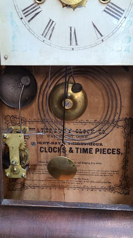 Antique Waterbury Clock. Untested. Please see all pictures for condition of the items listed and what is included in the lot. Pictures will also show any measurements if taken and is the best representation of the items. Thank you for looking and have fun bidding! We appreciate Treasure Hunters!