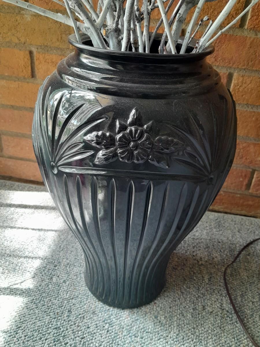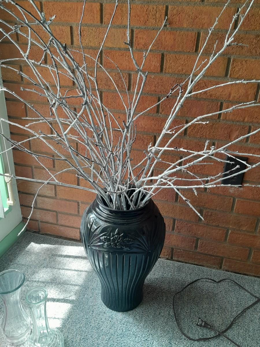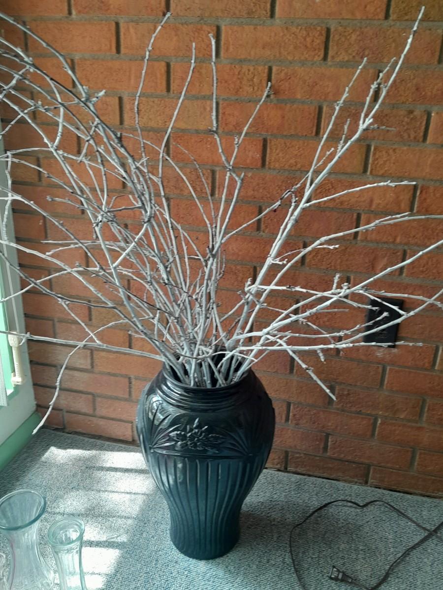 WOODEN SHELF, CANDLE SCONCES AND A VASE WITH TWIGS