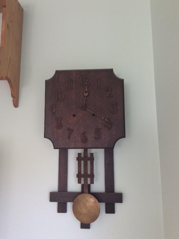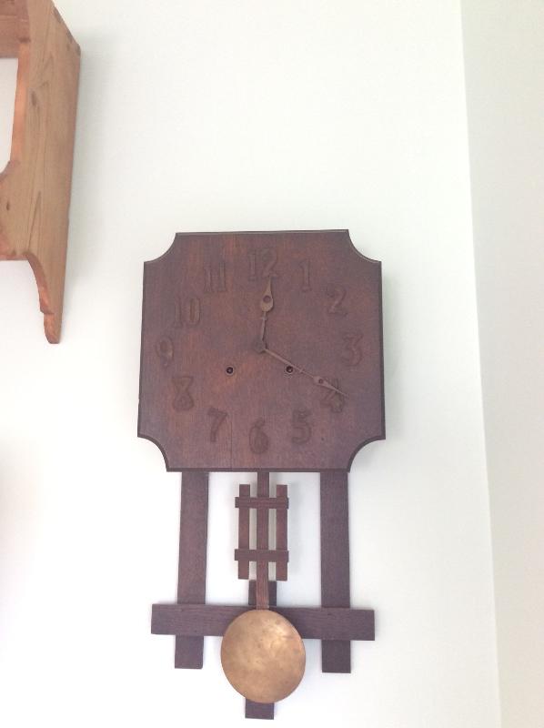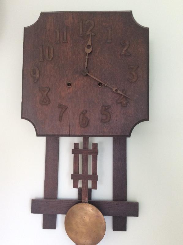 Antique Oak Arts and Crafts Period Wall Clock with key