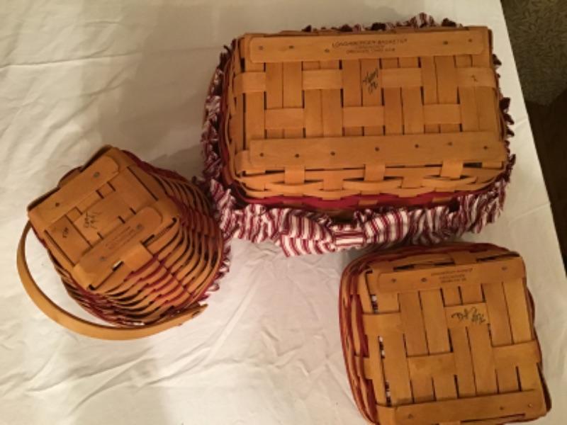 3 SIGNED Longaberger Baskets