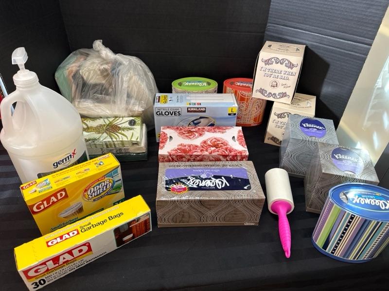 Kleenex boxes, 1 gallon of hand sanitizer,