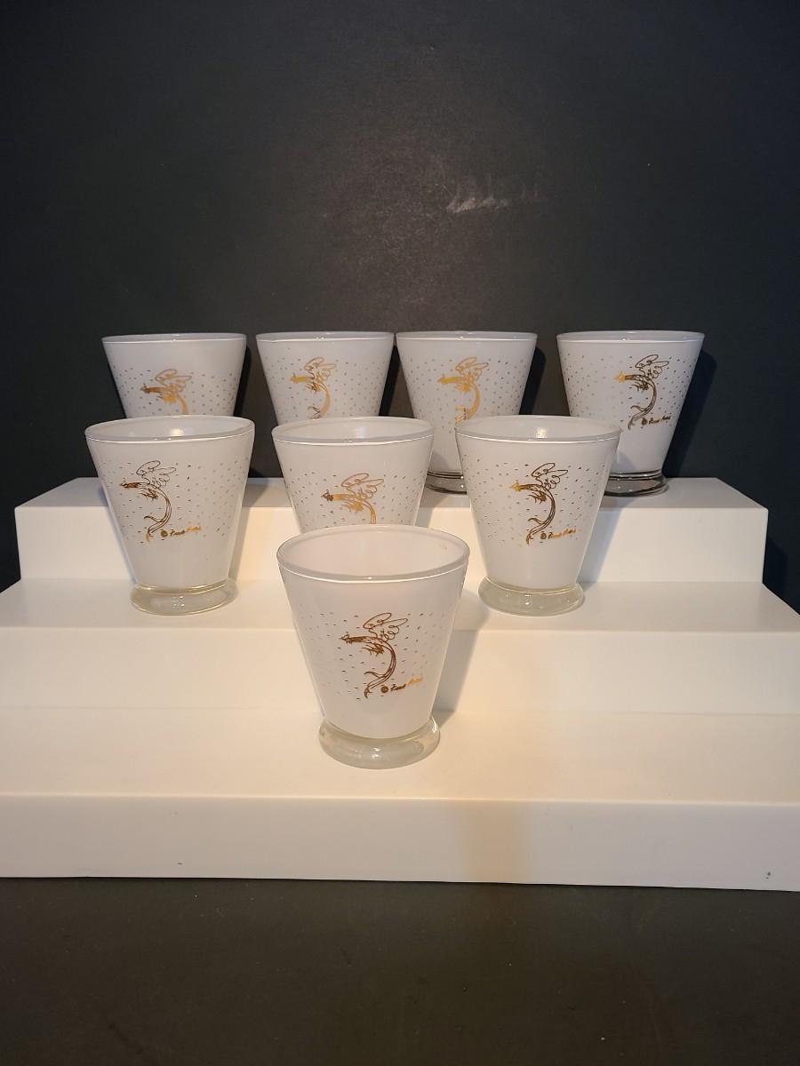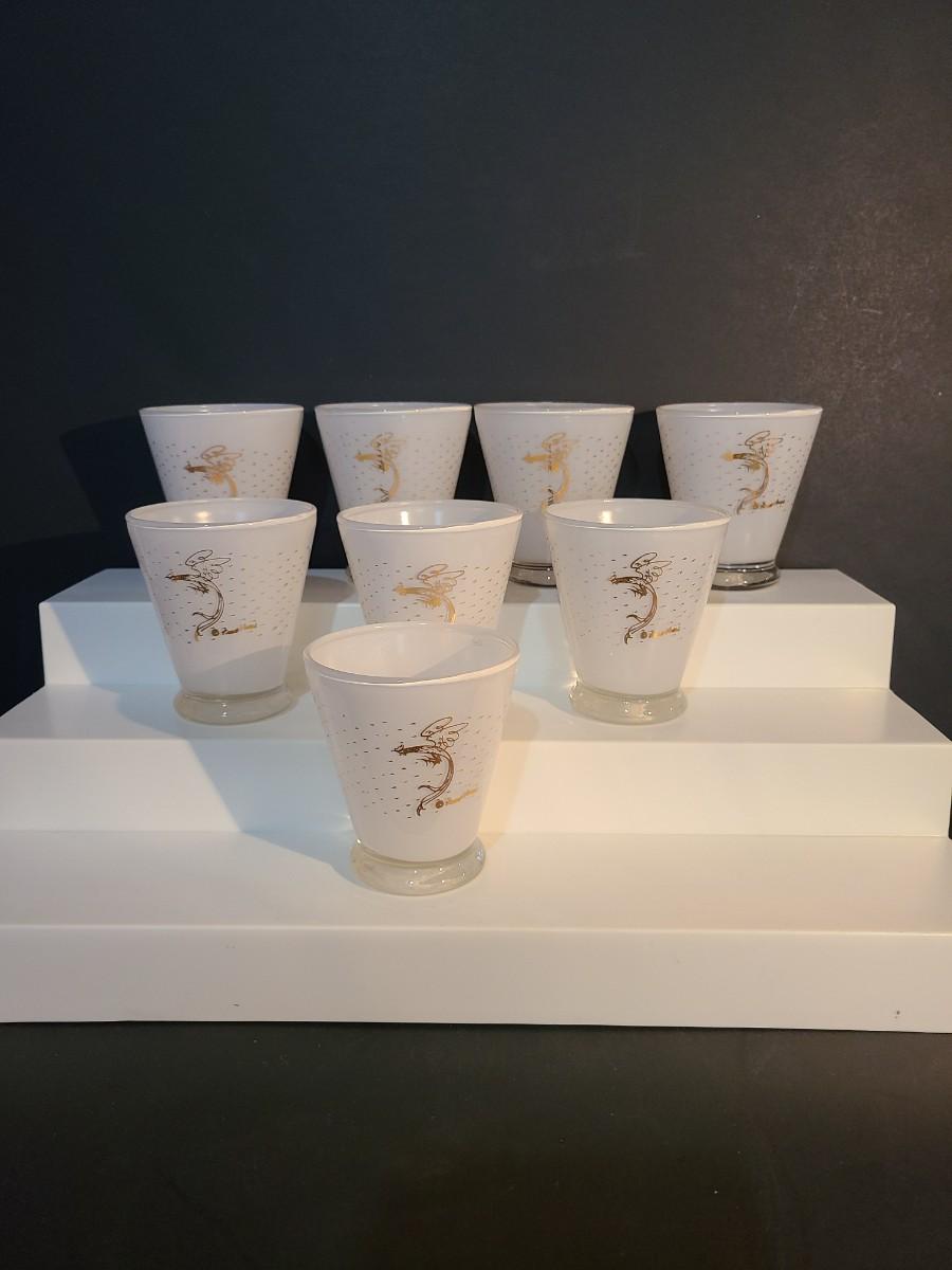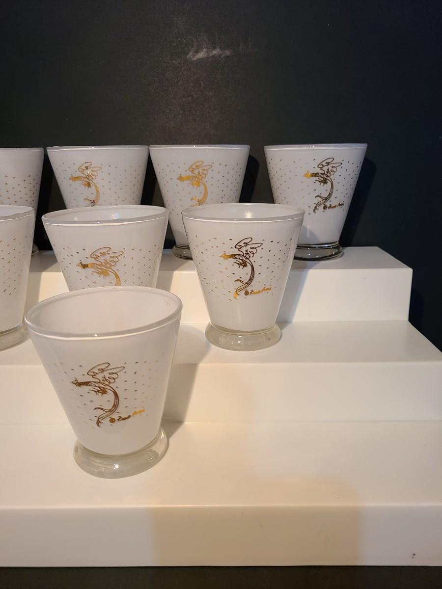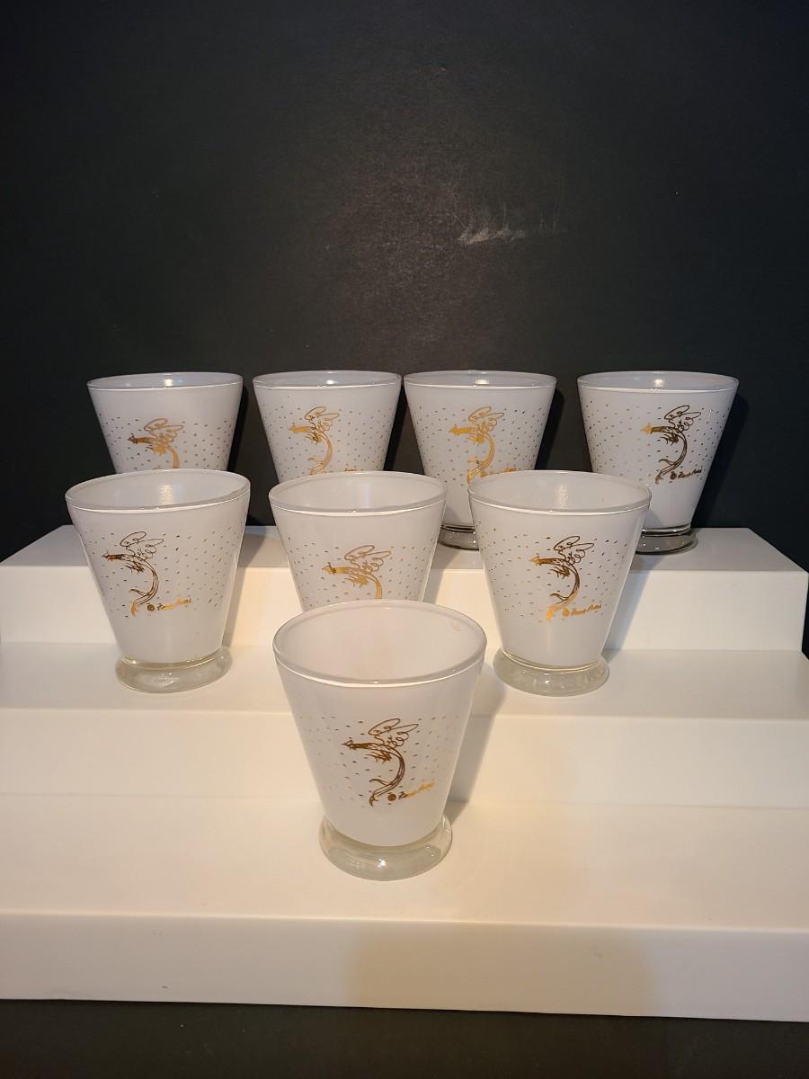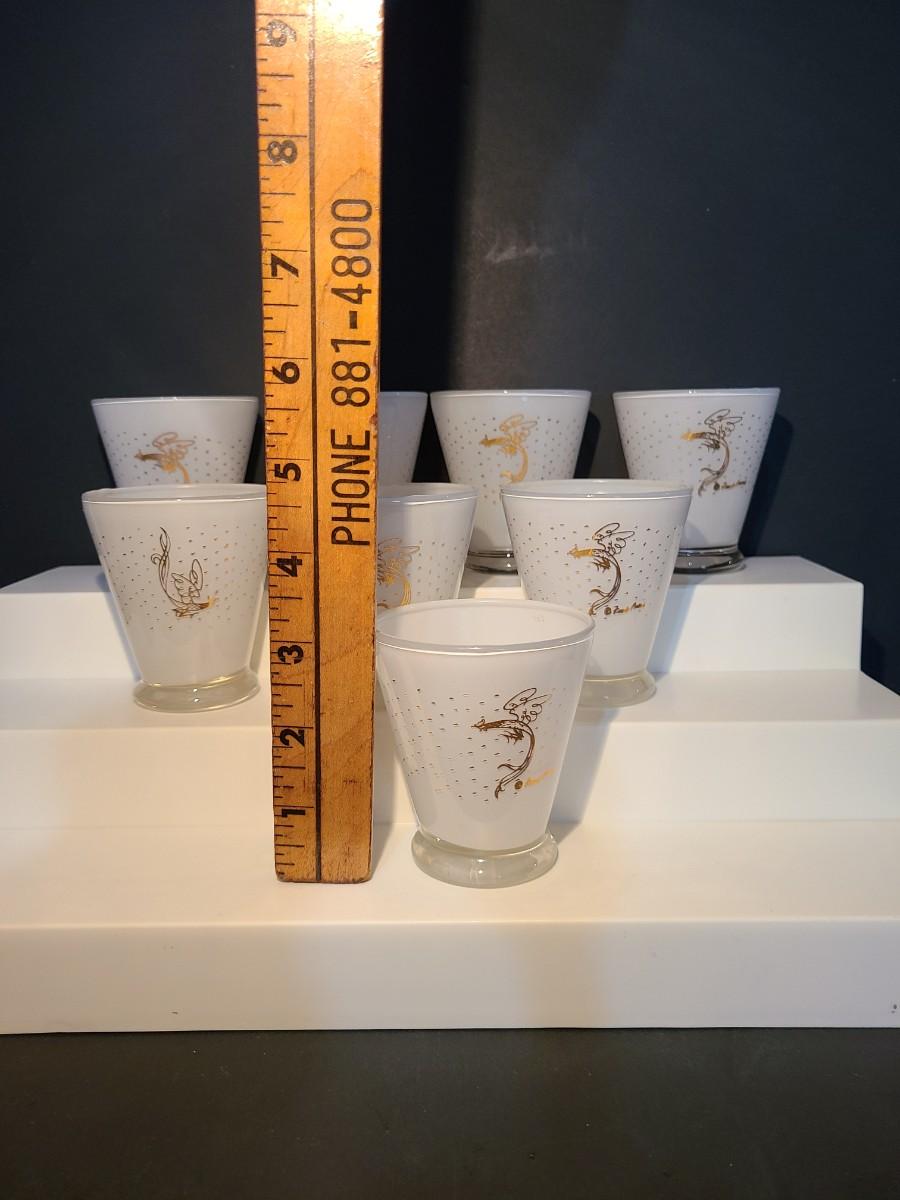 LOT 2: MCM Fred Press Rooster Atomic White & Gold Cocktail Glasses 3 inches Set/8