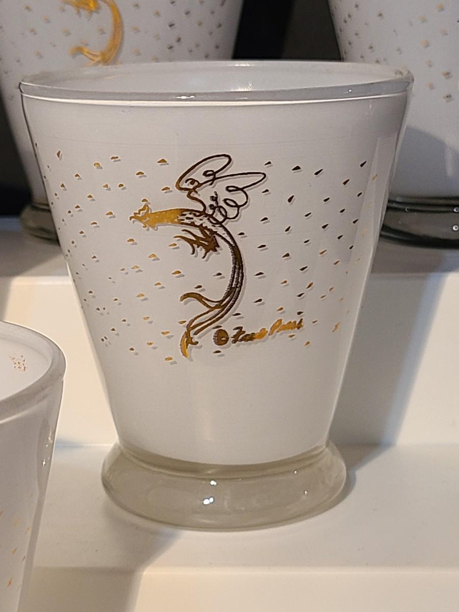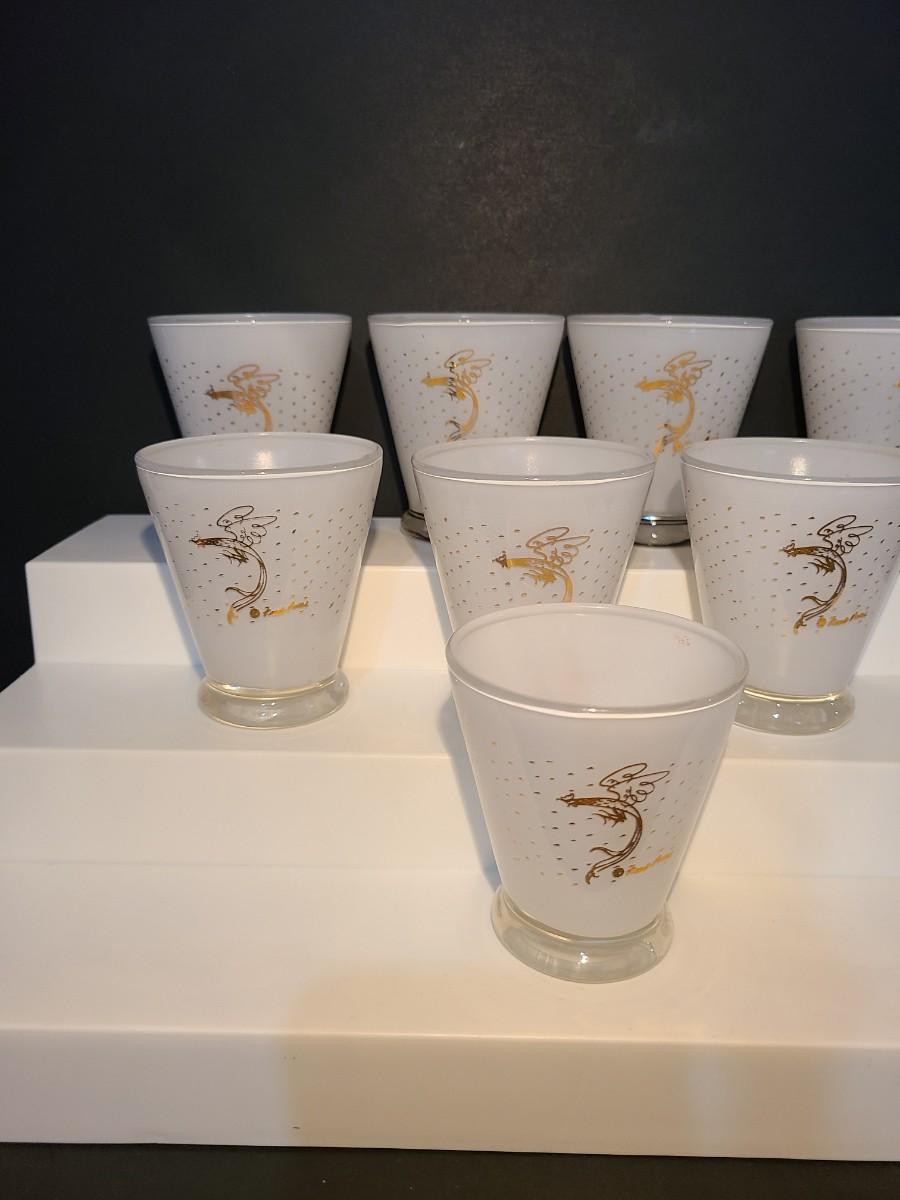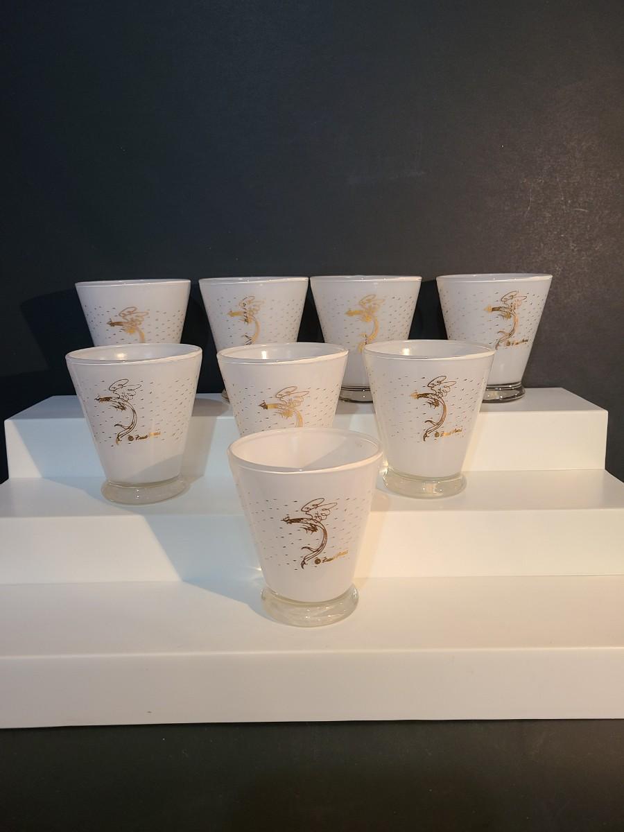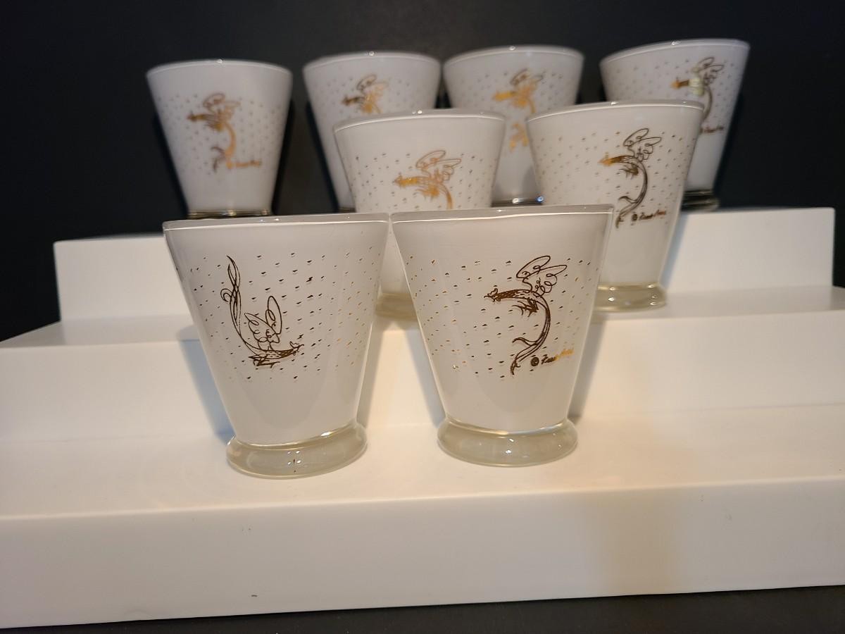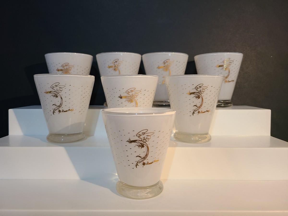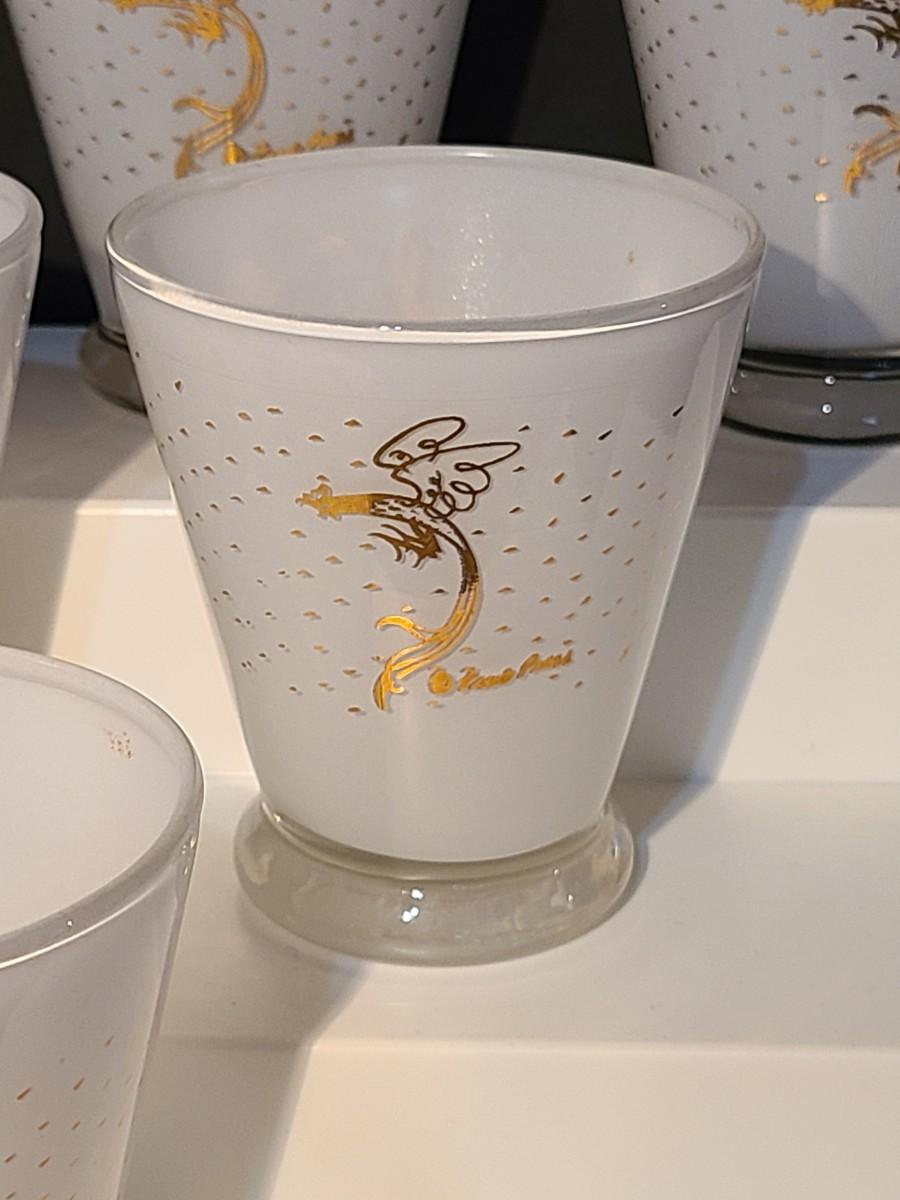LOT 2: MCM Fred Press Rooster Atomic White & Gold Cocktail Glasses 3 inches Set/8