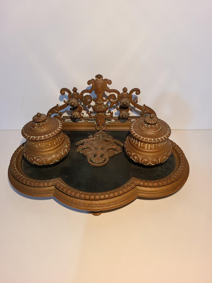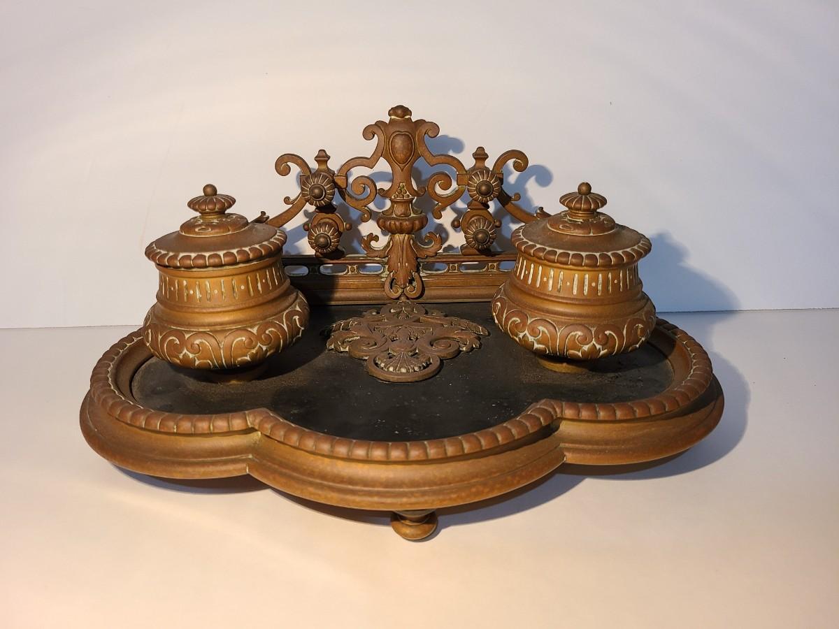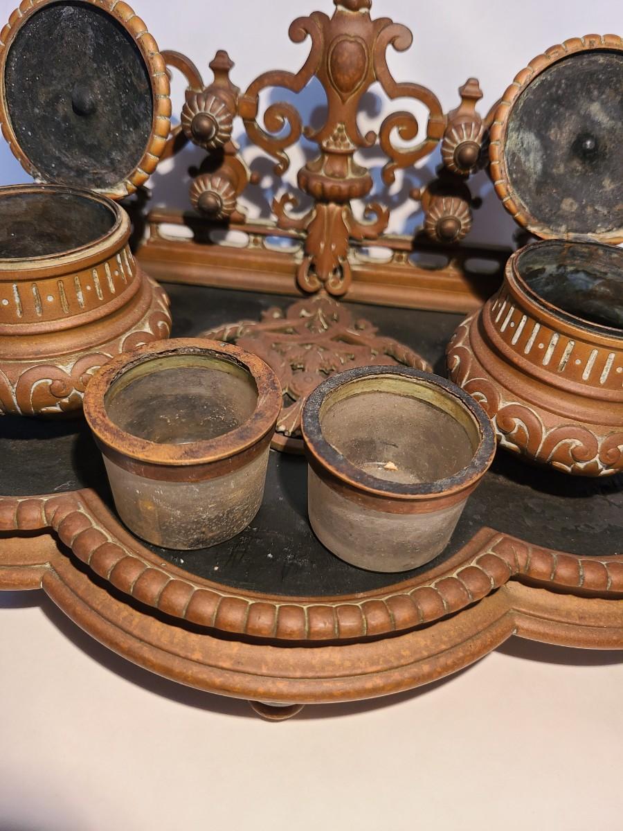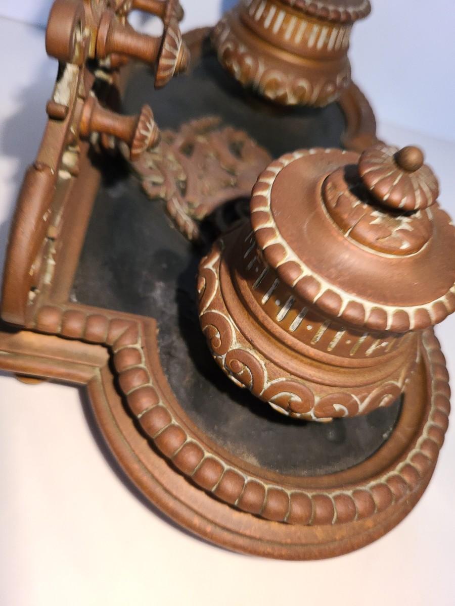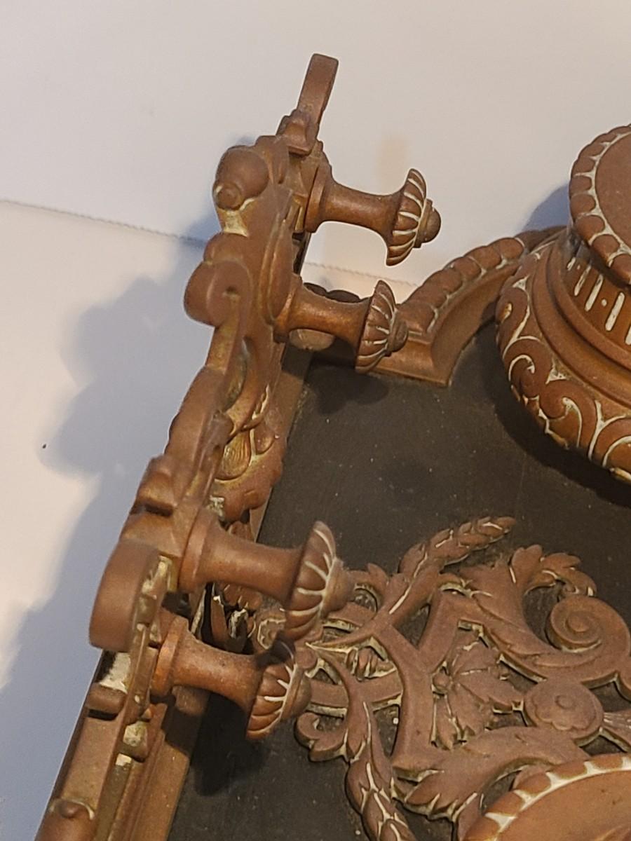 LOT 3: Stunning Antique Brass Double Inkwell, Heavy & Ornate