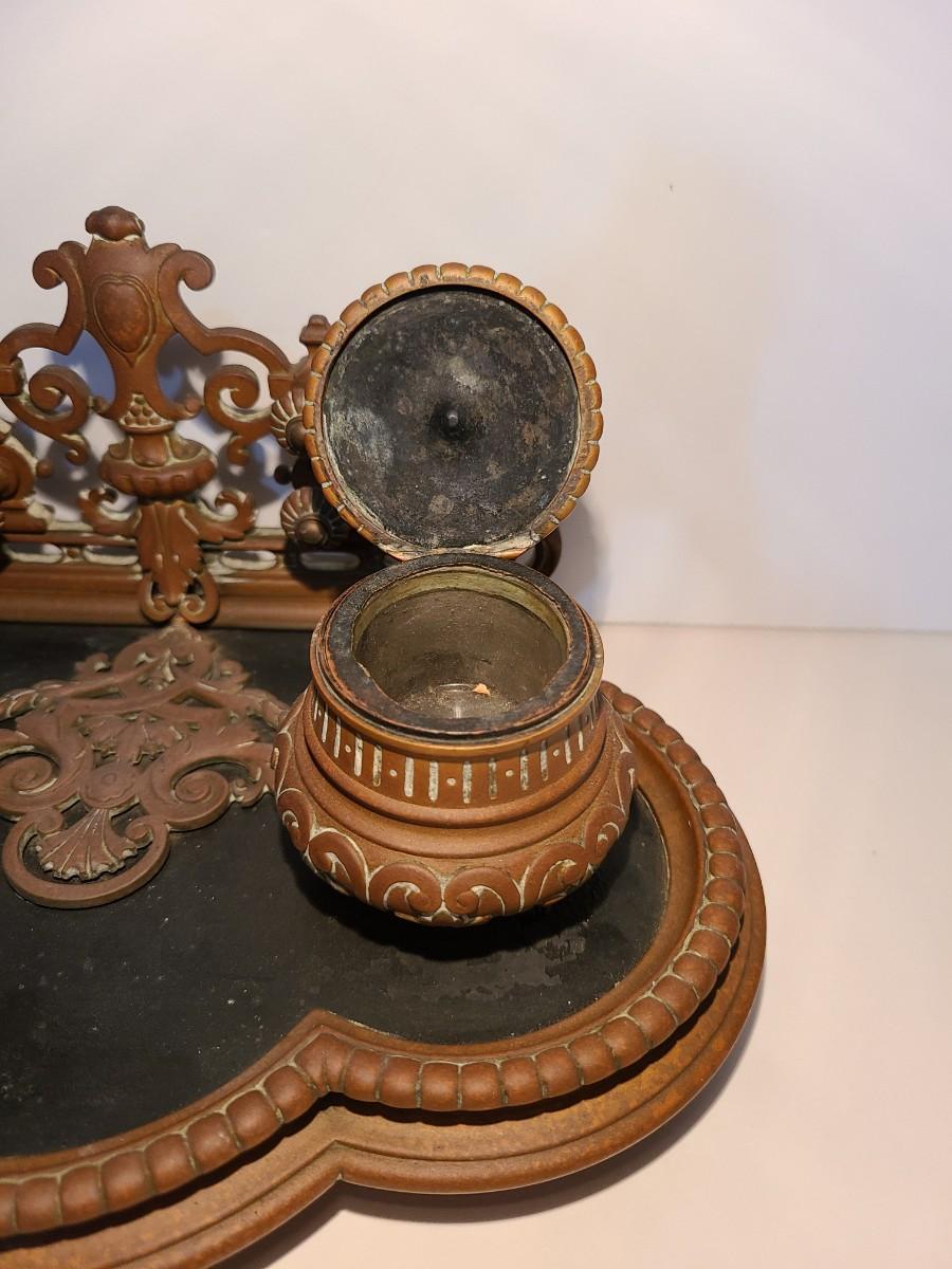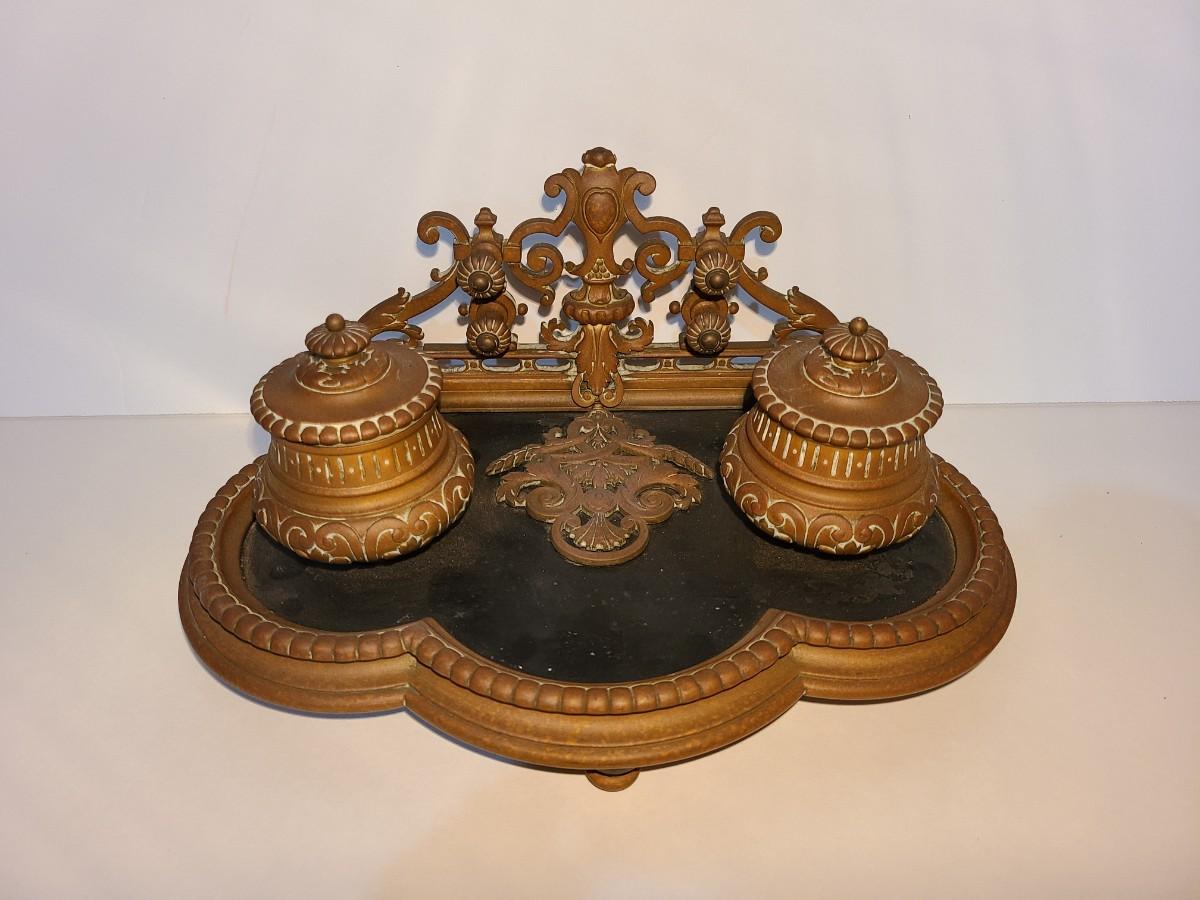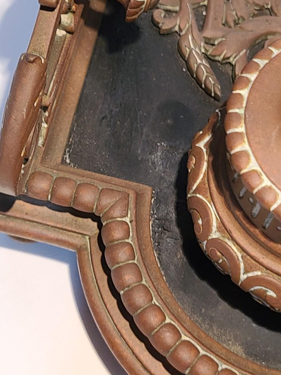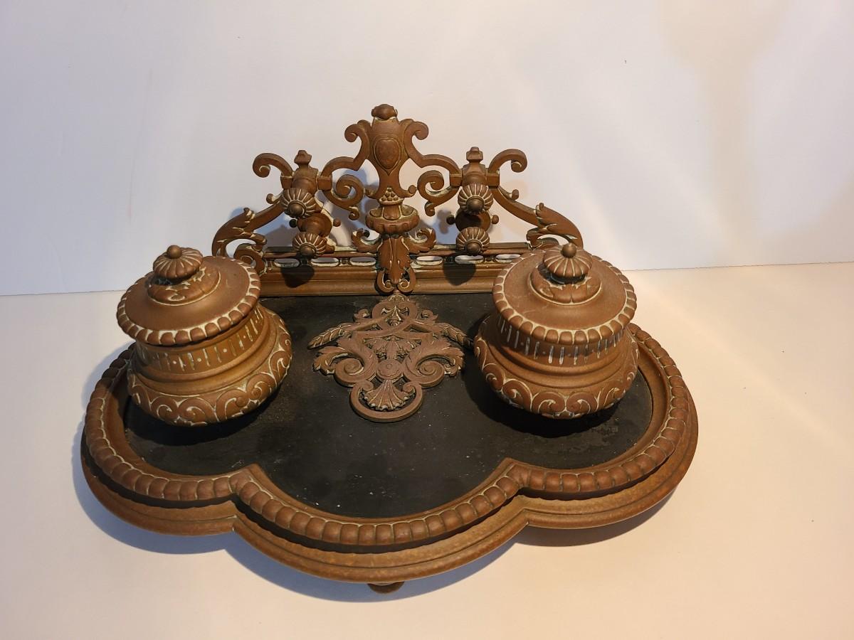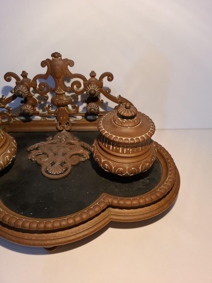 LOT 3: Stunning Antique Brass Double Inkwell, Heavy & Ornate