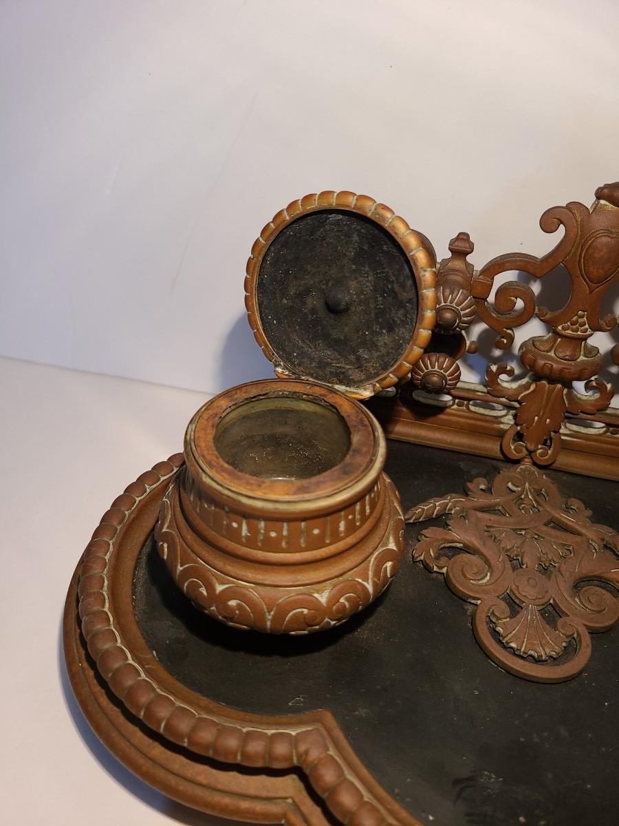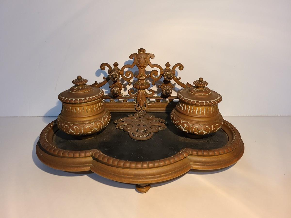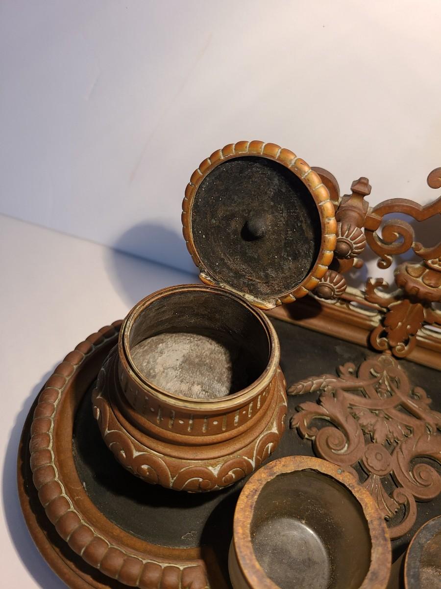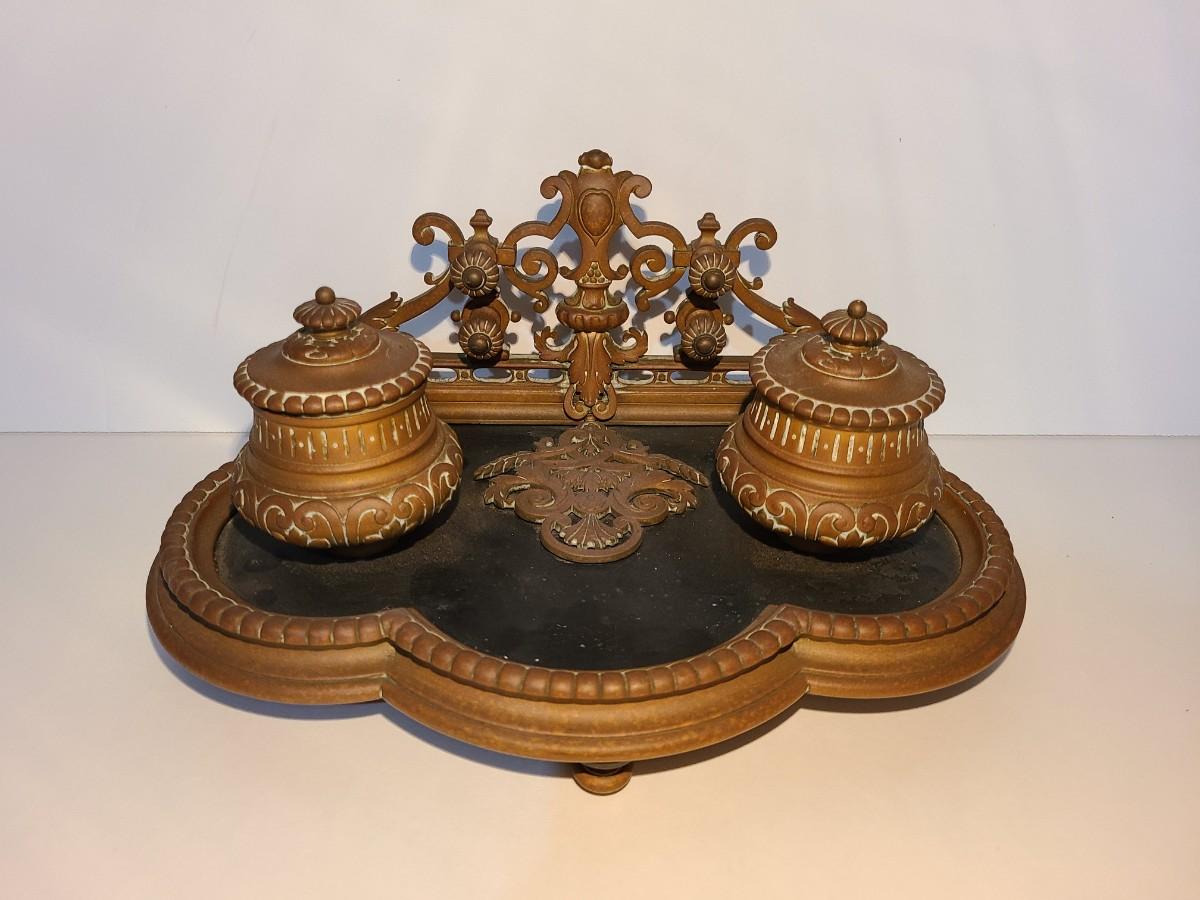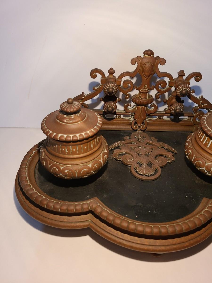 LOT 3: Stunning Antique Brass Double Inkwell, Heavy & Ornate