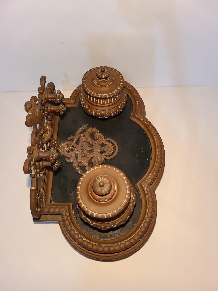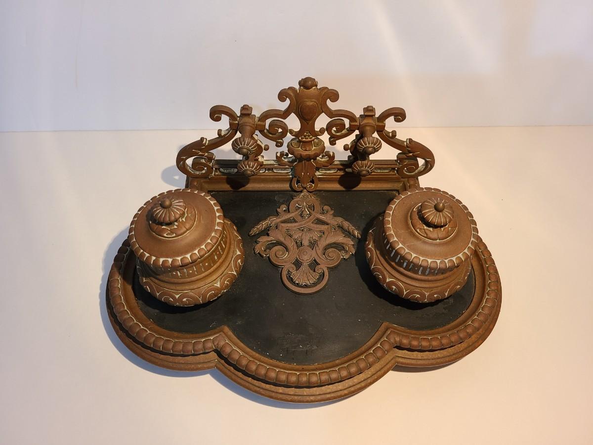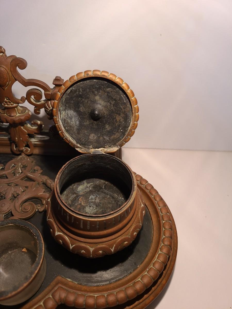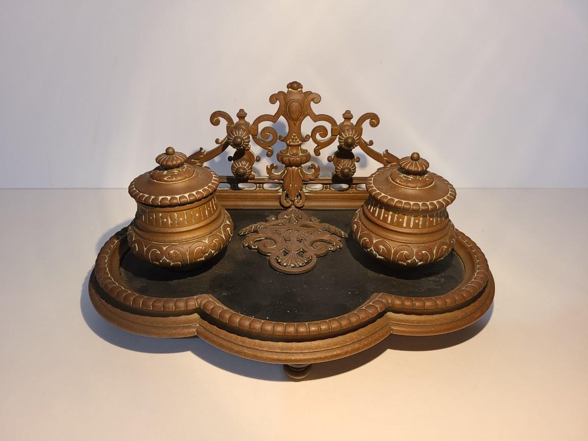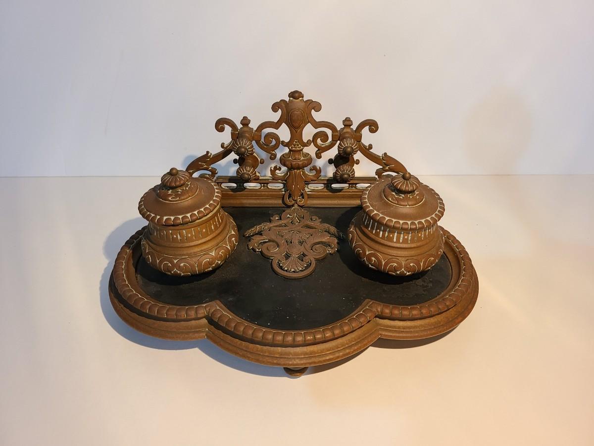 LOT 3: Stunning Antique Brass Double Inkwell, Heavy & Ornate