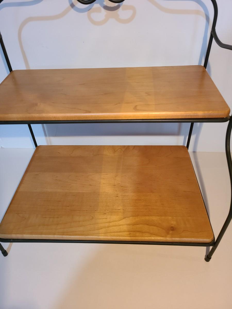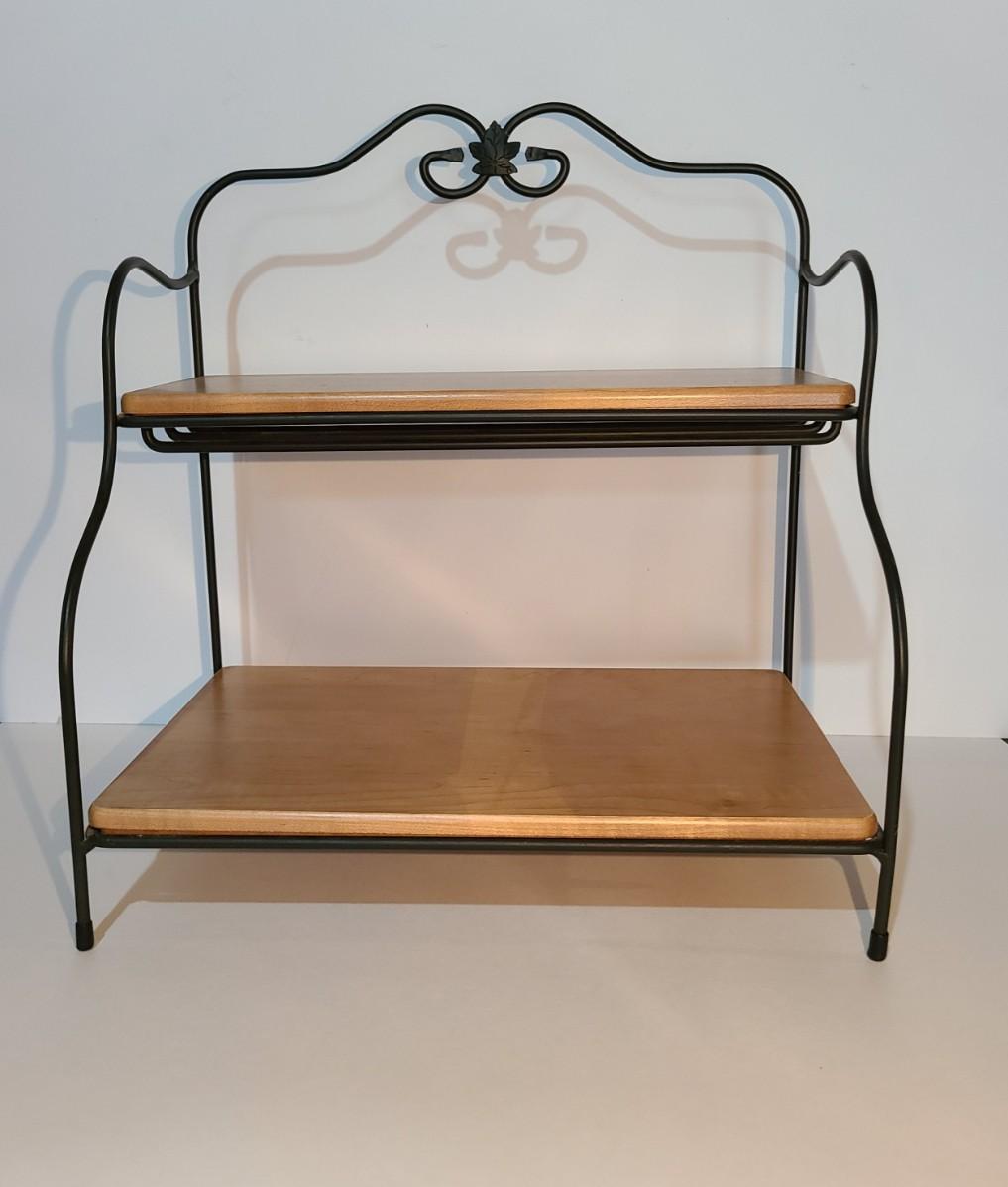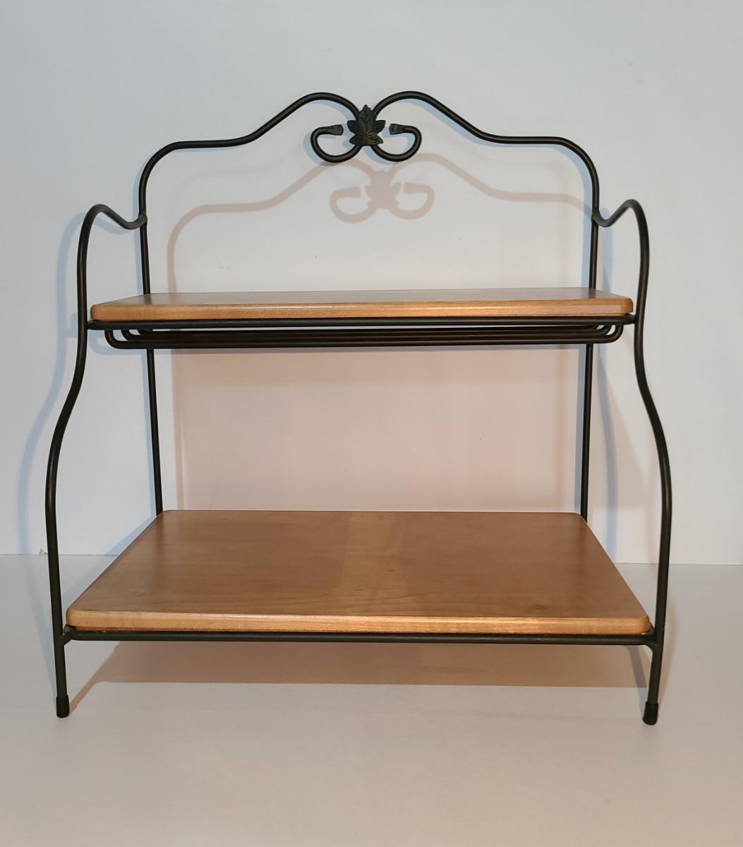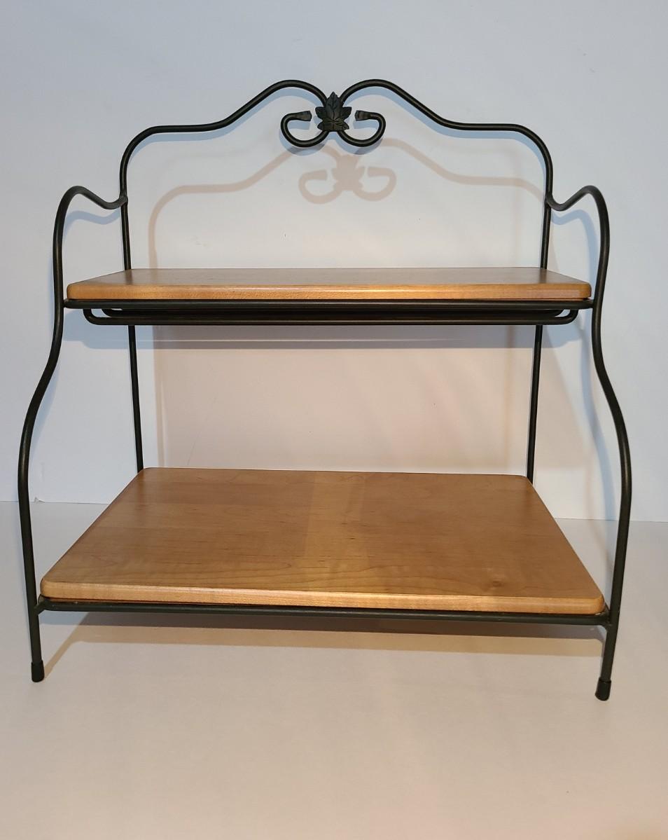 This can be used on counters or walls. Can also be used with wood inserts and baskets. The shelfs show wear because they have faint fade lines on them from storage. The back two legs are missing rubber points on feet. Not needed or you can add pads to it. Not seen when items on shelves. See pics. Solid cast iron frame with two wood shelves. Please see all pictures as they are the best representation of the items. The pictures show condition, measurements if taken, and what is included in the lot. Due to the large amount that we photograph and the time frame, we are not always able to take measurements. All items unless noted, are pre-owned and have been used. If you purchased furniture, you must bring help. We do not allow one person to carry large furniture out on their own. Bring help, tools and a truck for the safety of our client’s homes, and your personal safety. Any damages that result to the property including walls, and floors due to moving of the furniture will be charged to the buyer. Company policy. Thank you.