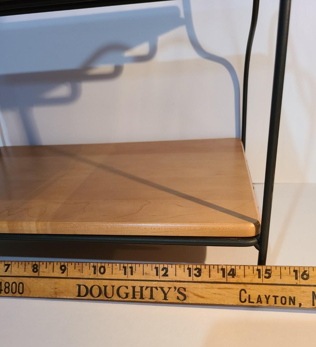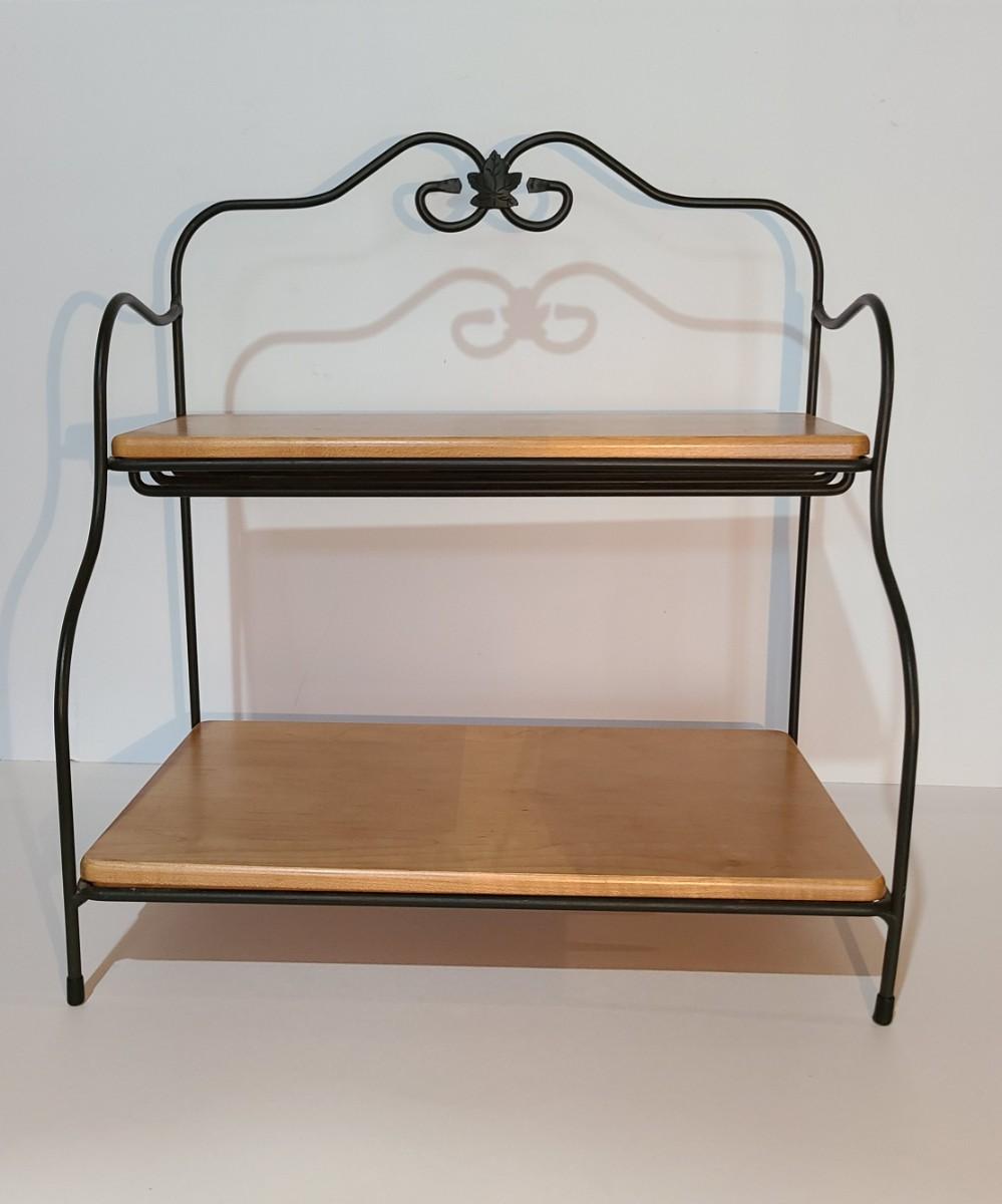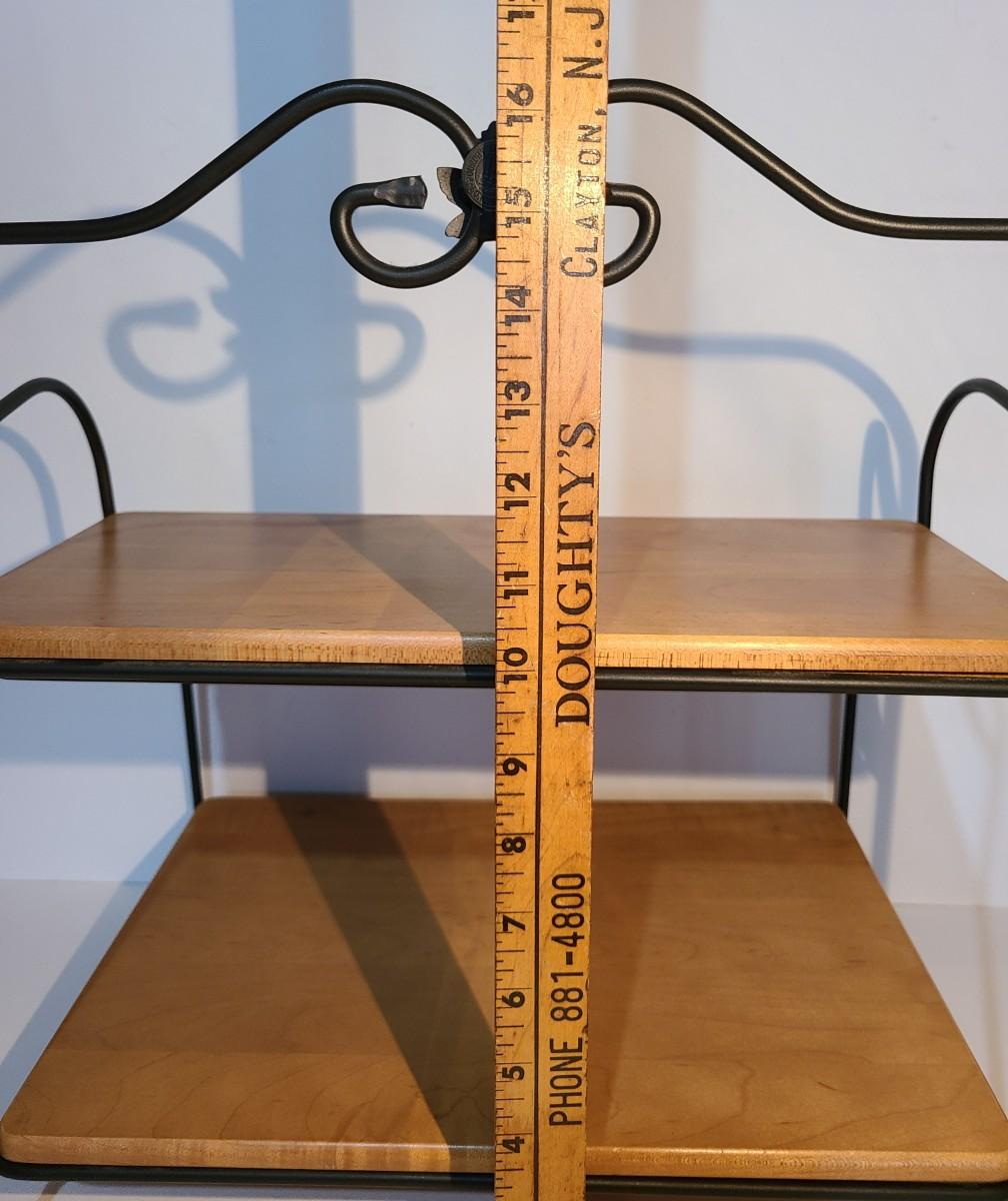 This can be used on counters or walls. Can also be used with wood inserts and baskets. The shelfs show wear because they have faint fade lines on them from storage. The back two legs are missing rubber points on feet. Not needed or you can add pads to it. Not seen when items on shelves. See pics. Solid cast iron frame with two wood shelves. Please see all pictures as they are the best representation of the items. The pictures show condition, measurements if taken, and what is included in the lot. Due to the large amount that we photograph and the time frame, we are not always able to take measurements. All items unless noted, are pre-owned and have been used. If you purchased furniture, you must bring help. We do not allow one person to carry large furniture out on their own. Bring help, tools and a truck for the safety of our client’s homes, and your personal safety. Any damages that result to the property including walls, and floors due to moving of the furniture will be charged to the buyer. Company policy. Thank you.