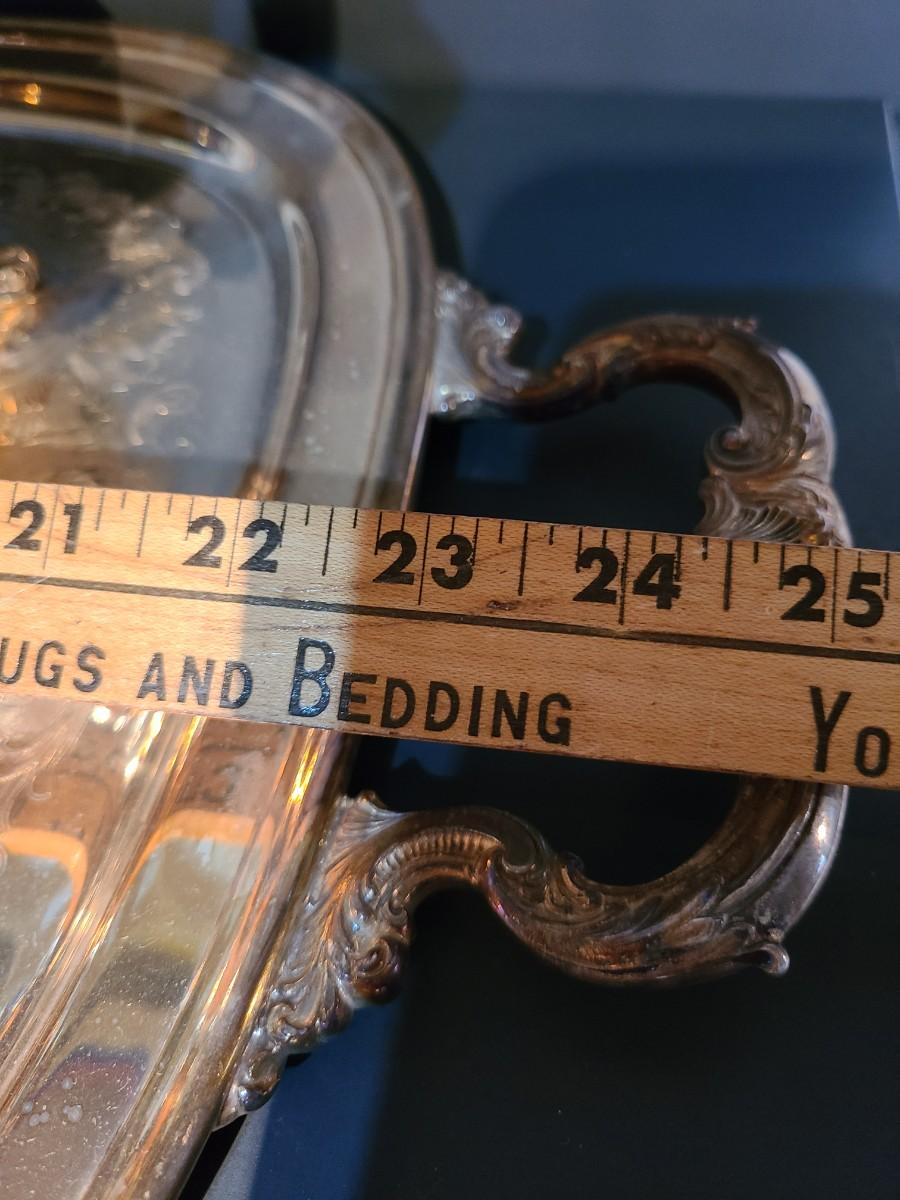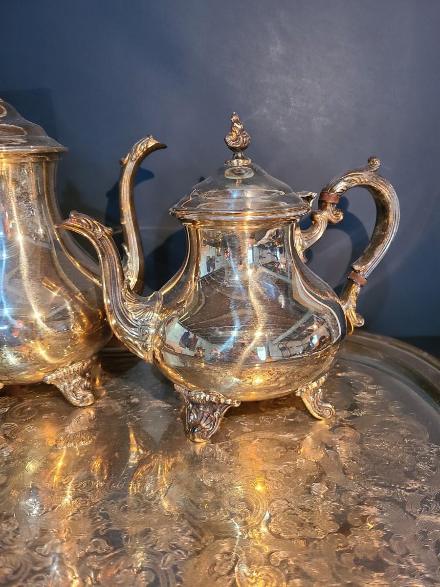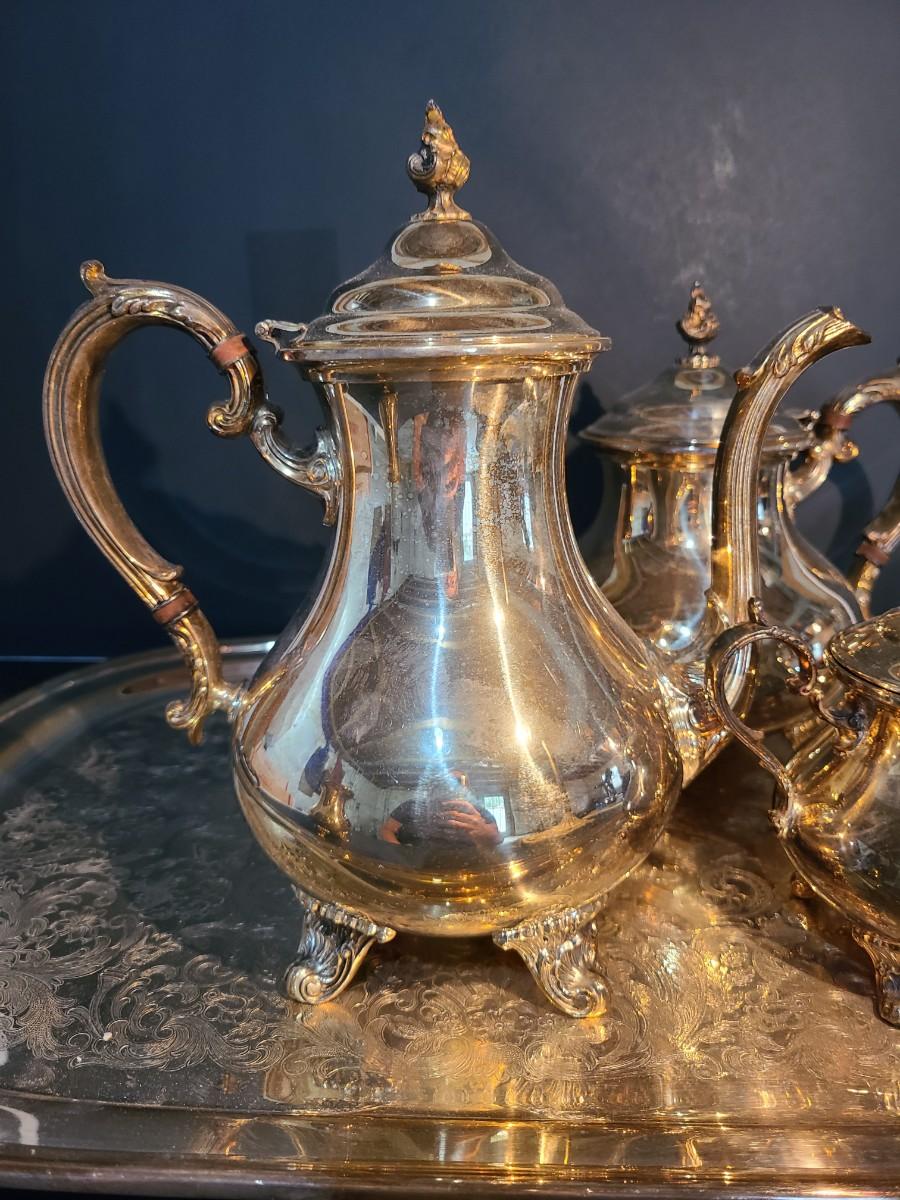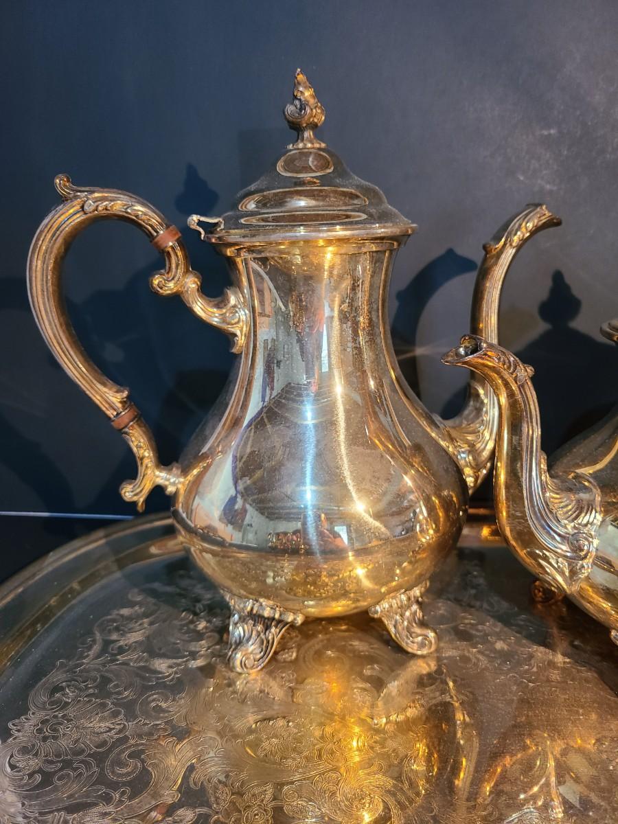 Lovely set. Solid in design. Needs to be cleaned. The interior of the creamer has a gold tone. Please see all pictures as they are the best representation of the items. The pictures show condition, measurements if taken, and what is included in the lot. Due to the large amount that we photograph and the time frame, we are not always able to take measurements. All items unless noted, are pre-owned and have been used. If you purchased furniture, you must bring help. We do not allow one person to carry large furniture out on their own. Bring help, tools and a truck for the safety of our client’s homes, and your personal safety. Any damages that result to the property including walls, and floors due to moving of the furniture will be charged to the buyer. Company policy. Thank you.