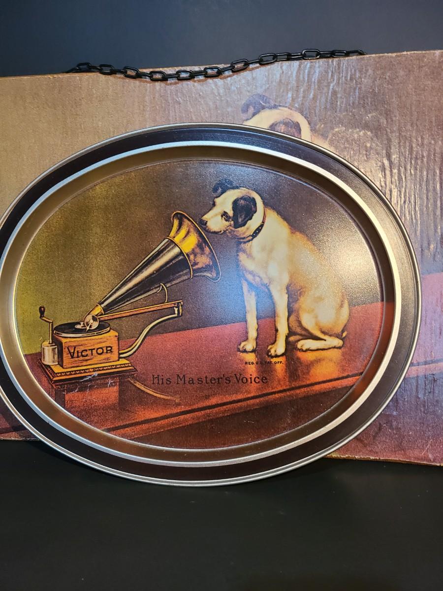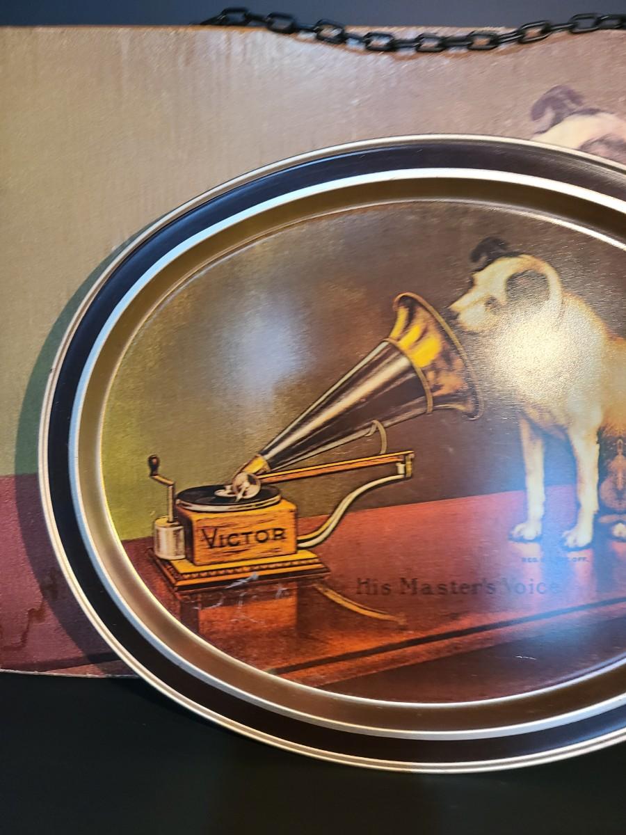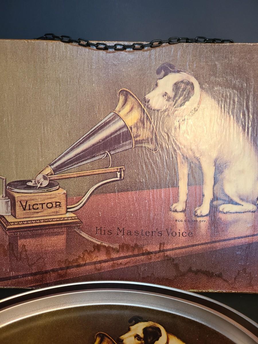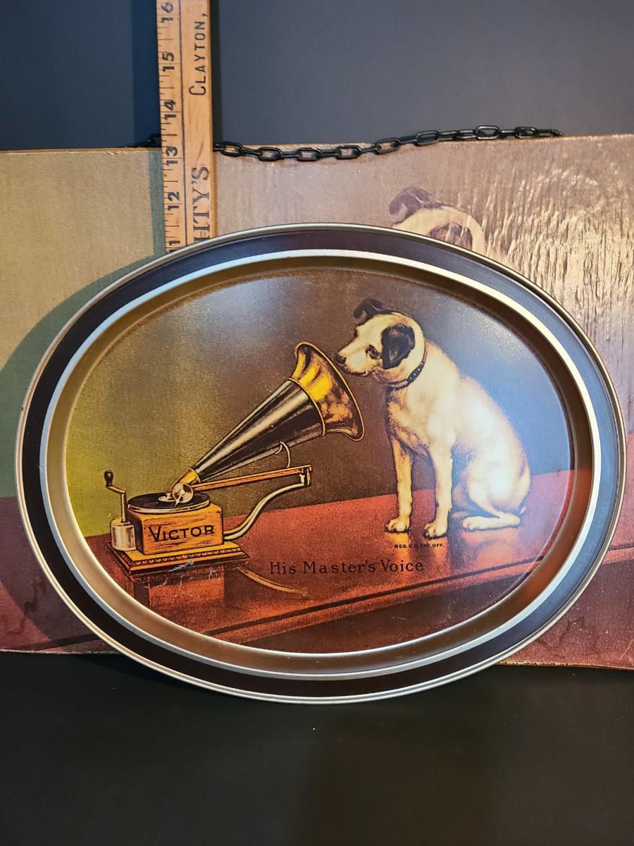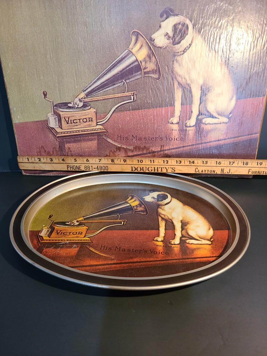 LOT 7: RCA Vintage Wood Sign and Metal Tray