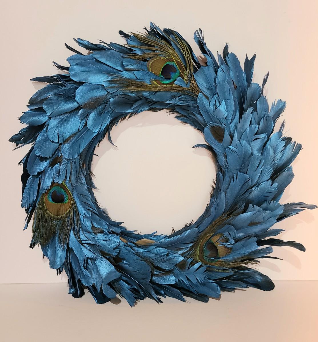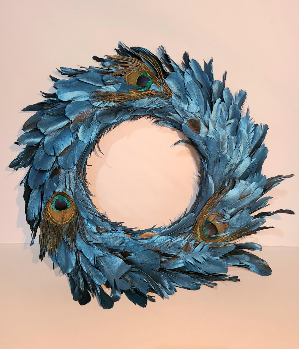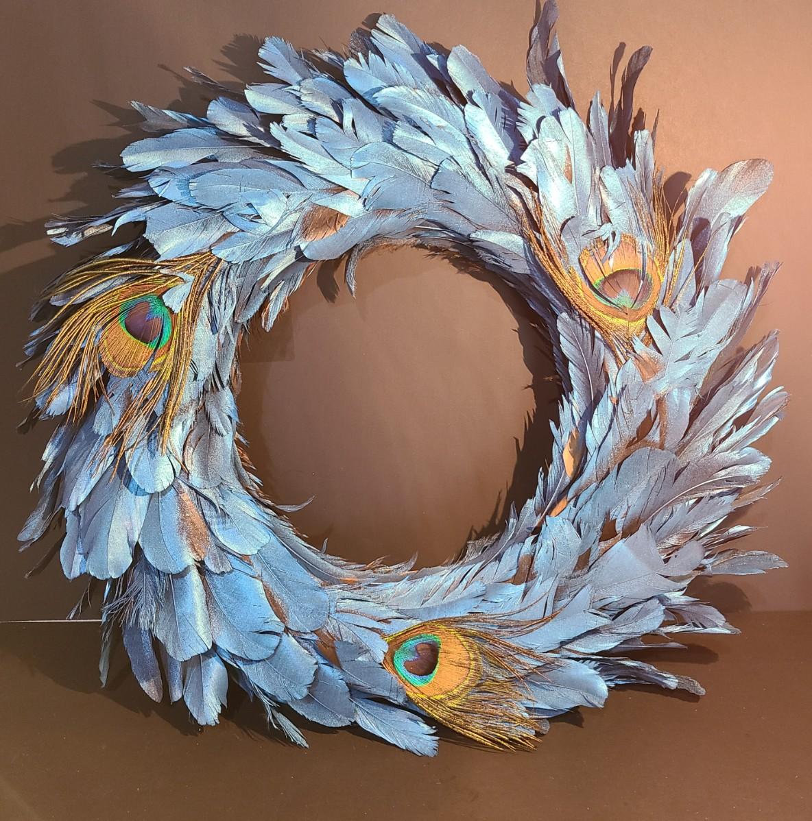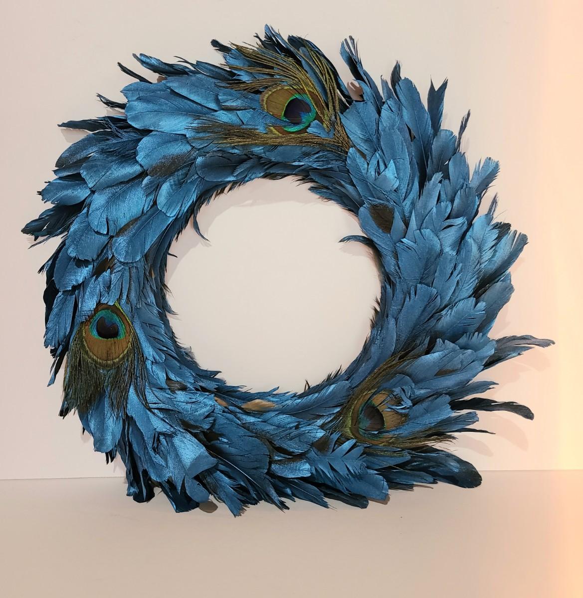LOT 10: Blue Feather Peacock Wreath