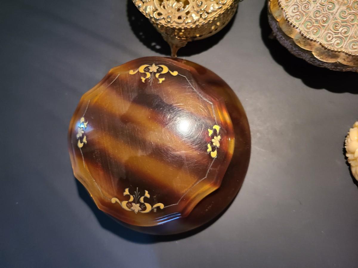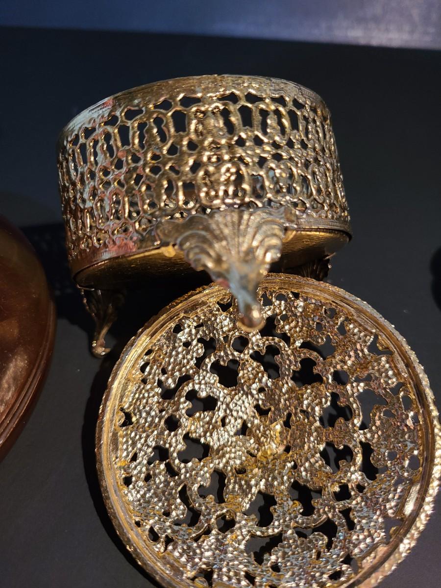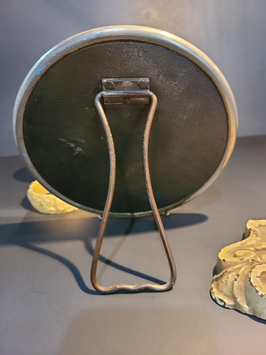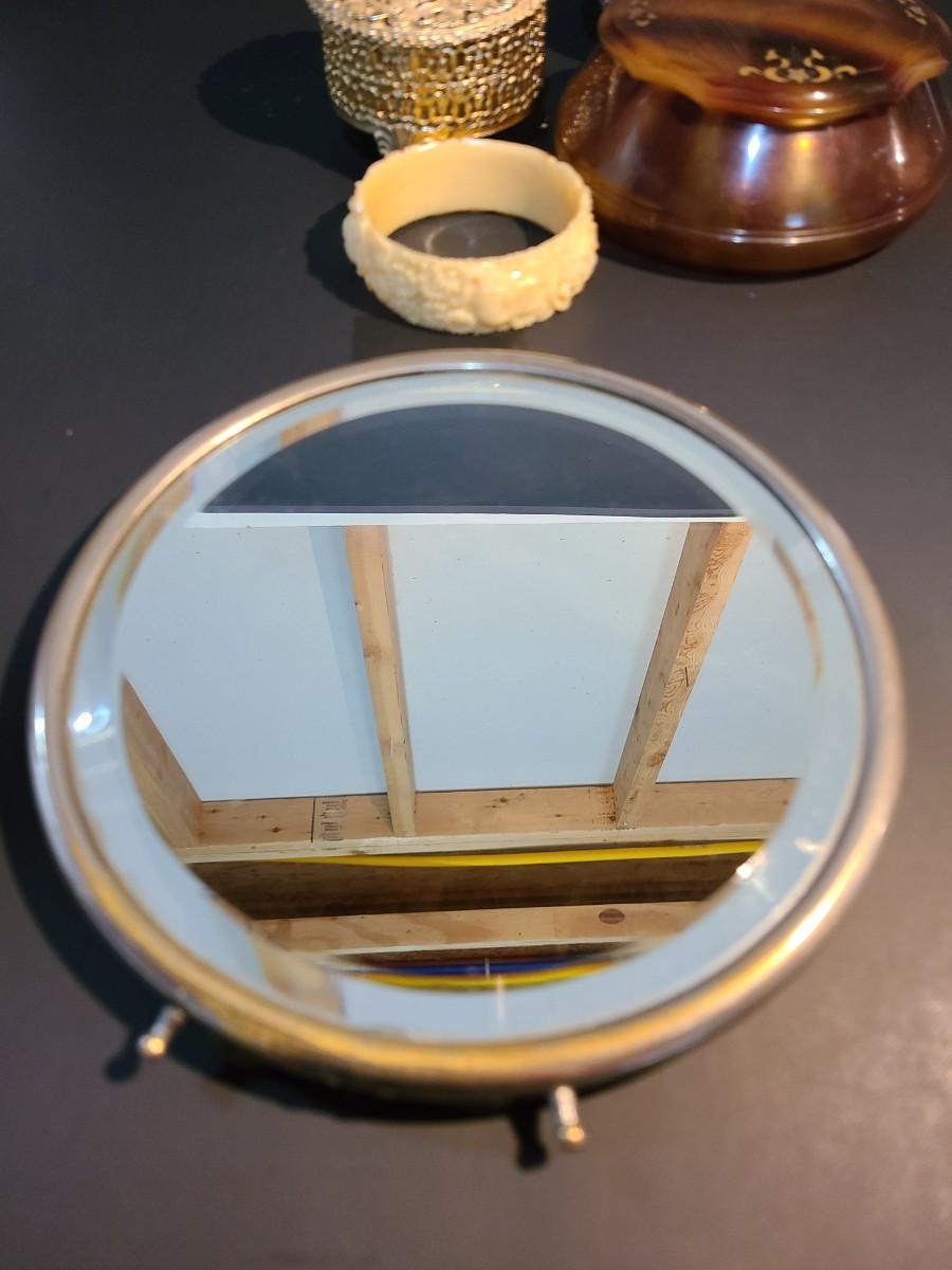 Mirror has beveled edges, shell is metal with green interior. Small round trinket has lightweight metal bottom and heavy ornate floral top, bangle bracelt, and celluloid tortoise shell design lidded dresser box. Please see all pictures as they are the best representation of the items. The pictures show condition, measurements if taken, and what is included in the lot. Due to the large amount that we photograph and the time frame, we are not always able to take measurements. All items unless noted, are pre-owned and have been used. If you purchased furniture, you must bring help. We do not allow one person to carry large furniture out on their own. Bring help, tools and a truck for the safety of our client’s homes, and your personal safety. Any damages that result to the property including walls, and floors due to moving of the furniture will be charged to the buyer. Company policy. Thank you.