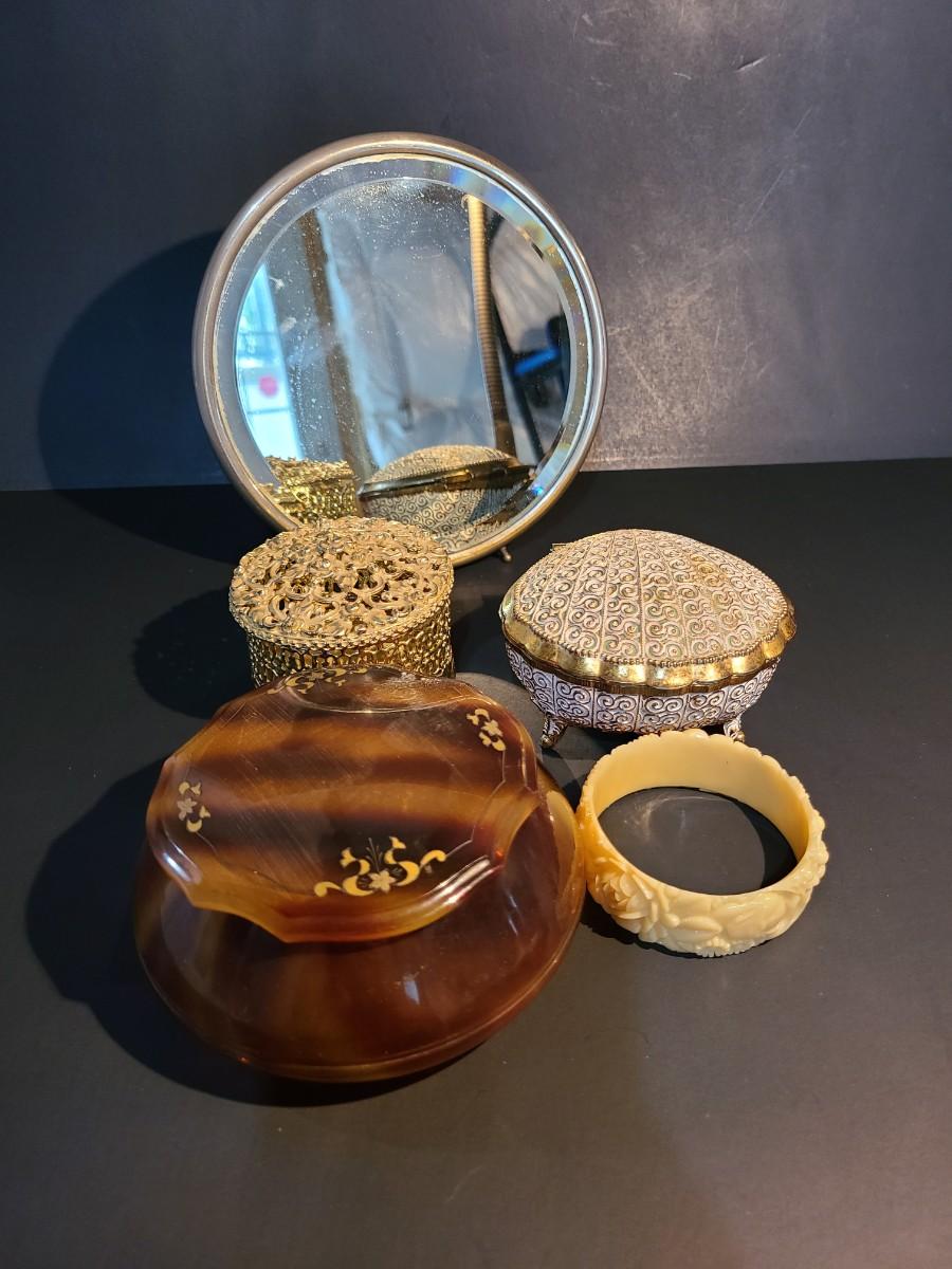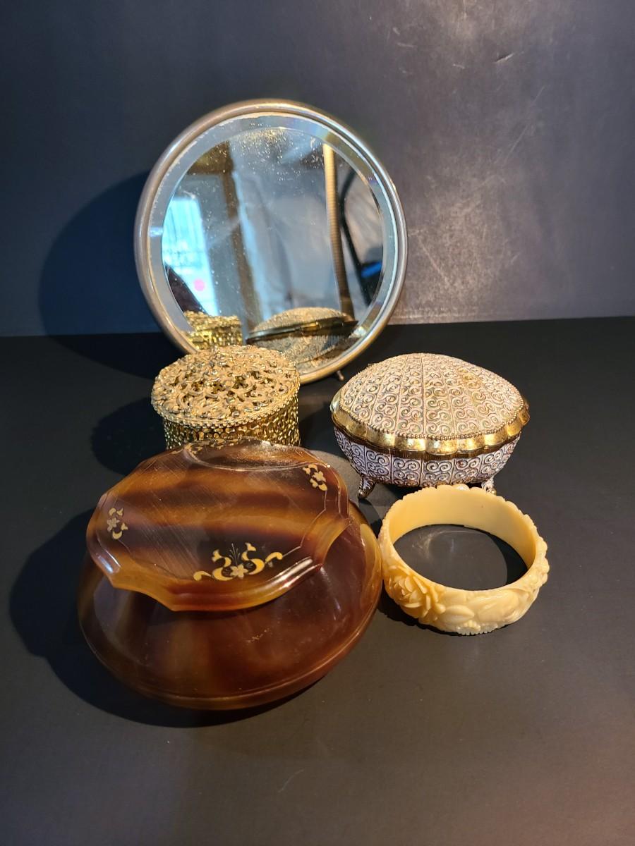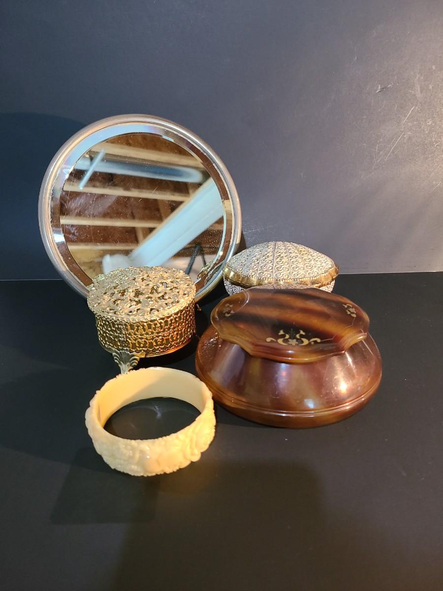 LOT 12: Vintage Vanity Mirror & Trinket Jewelry Boxes