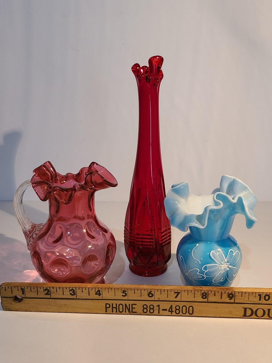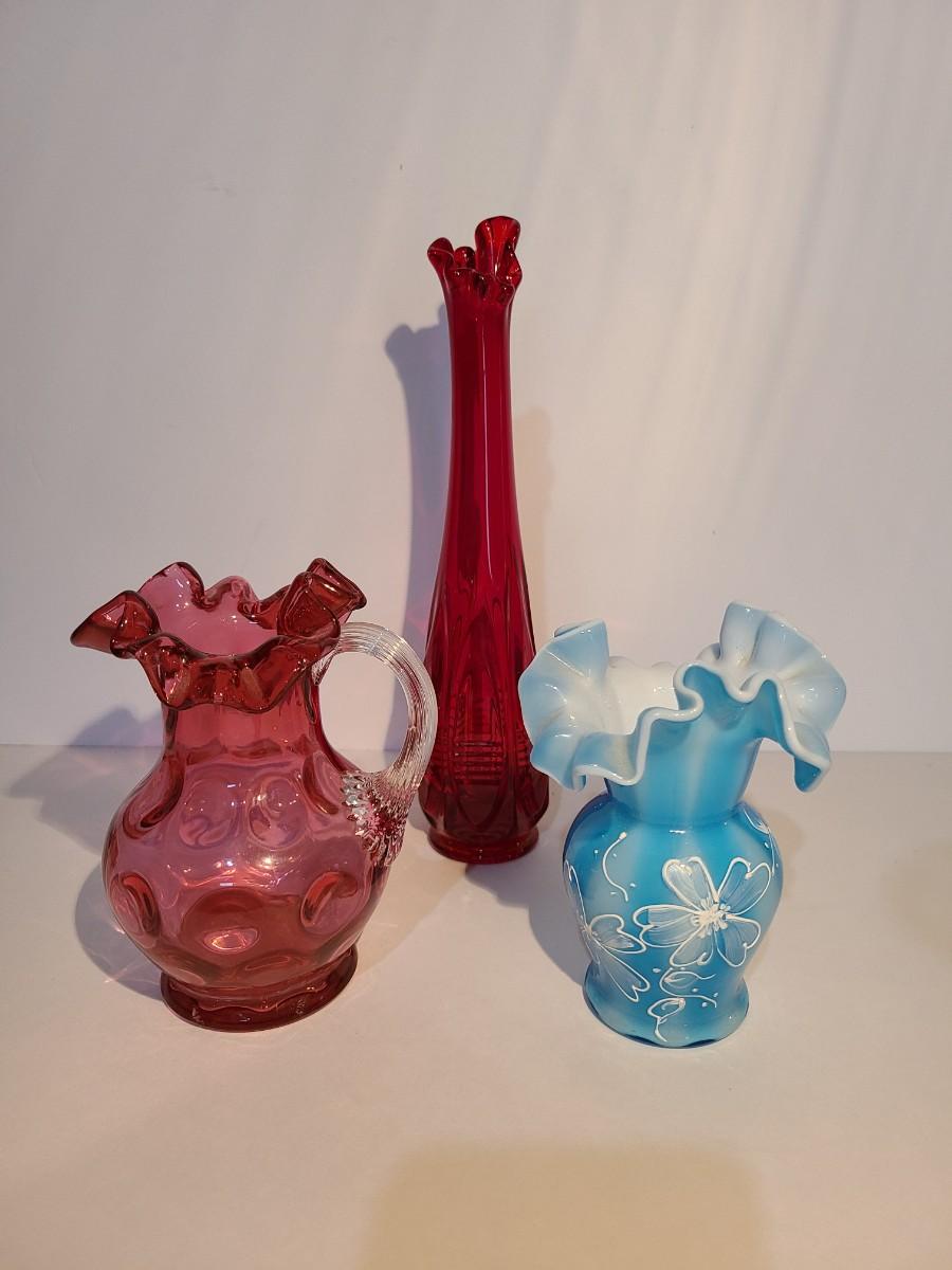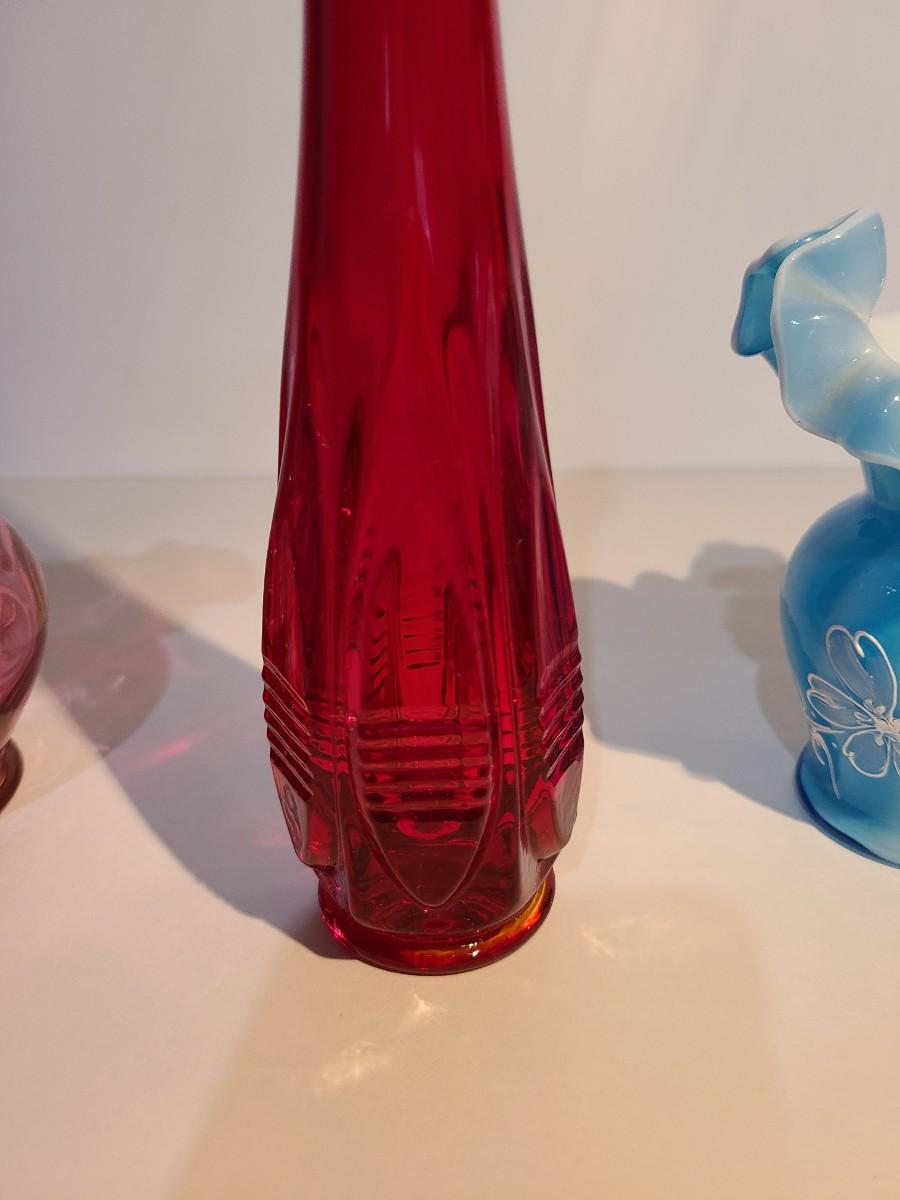 LOT 15: Fenton Red MCM Vase and More