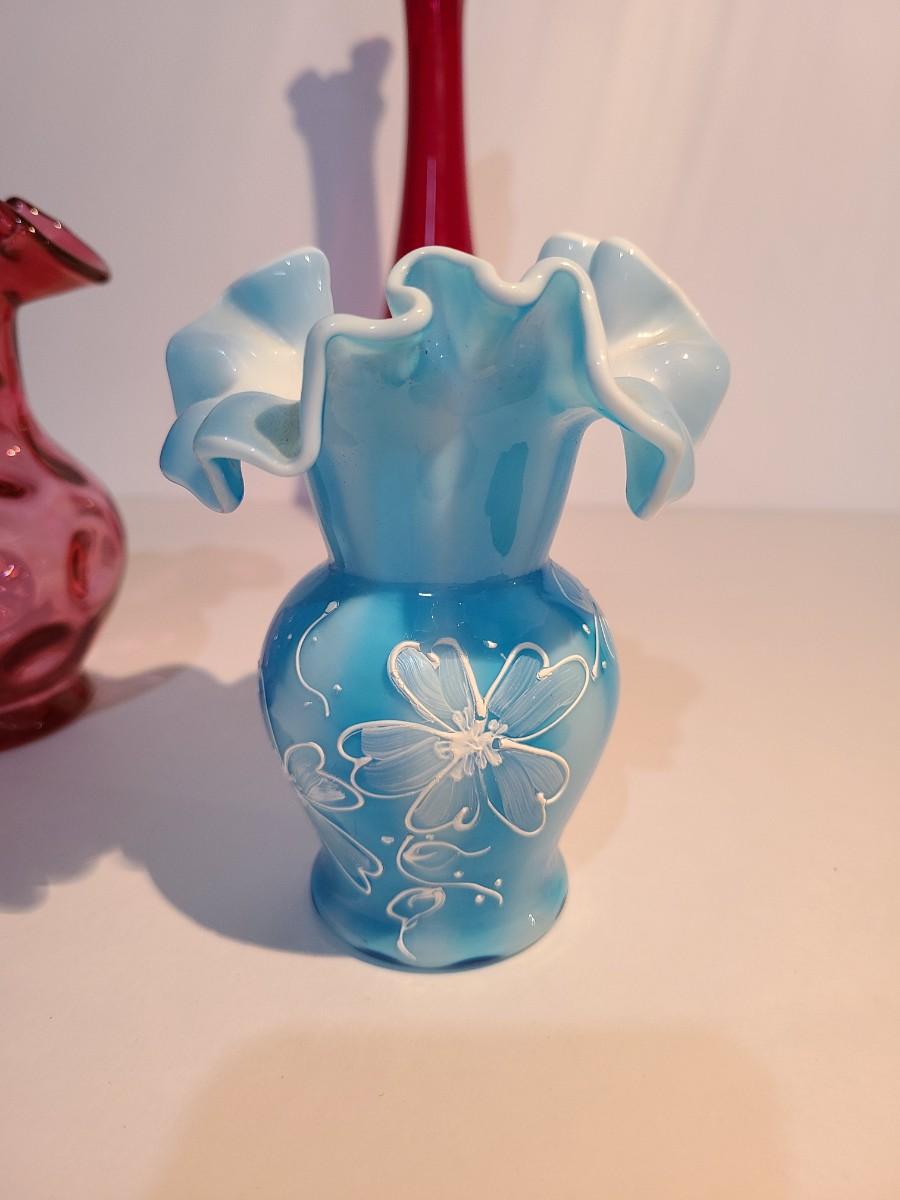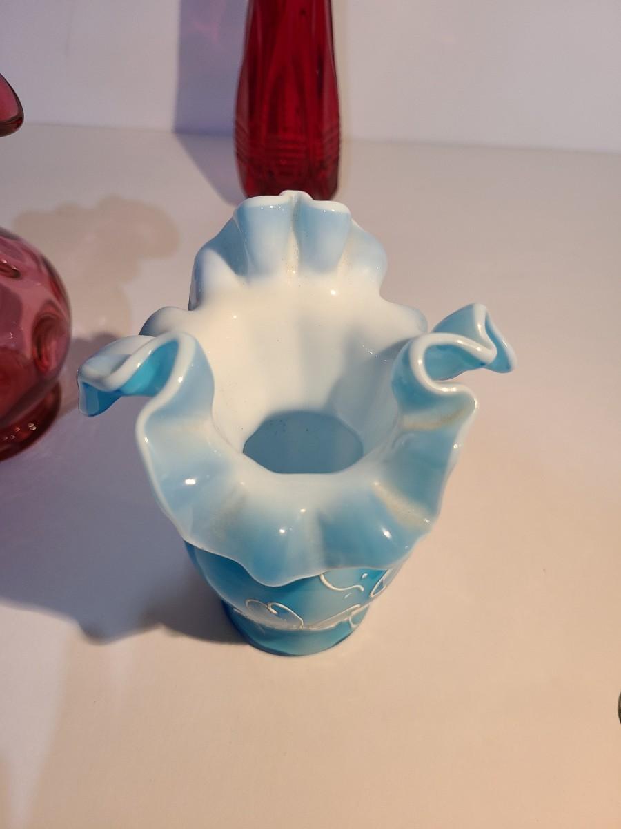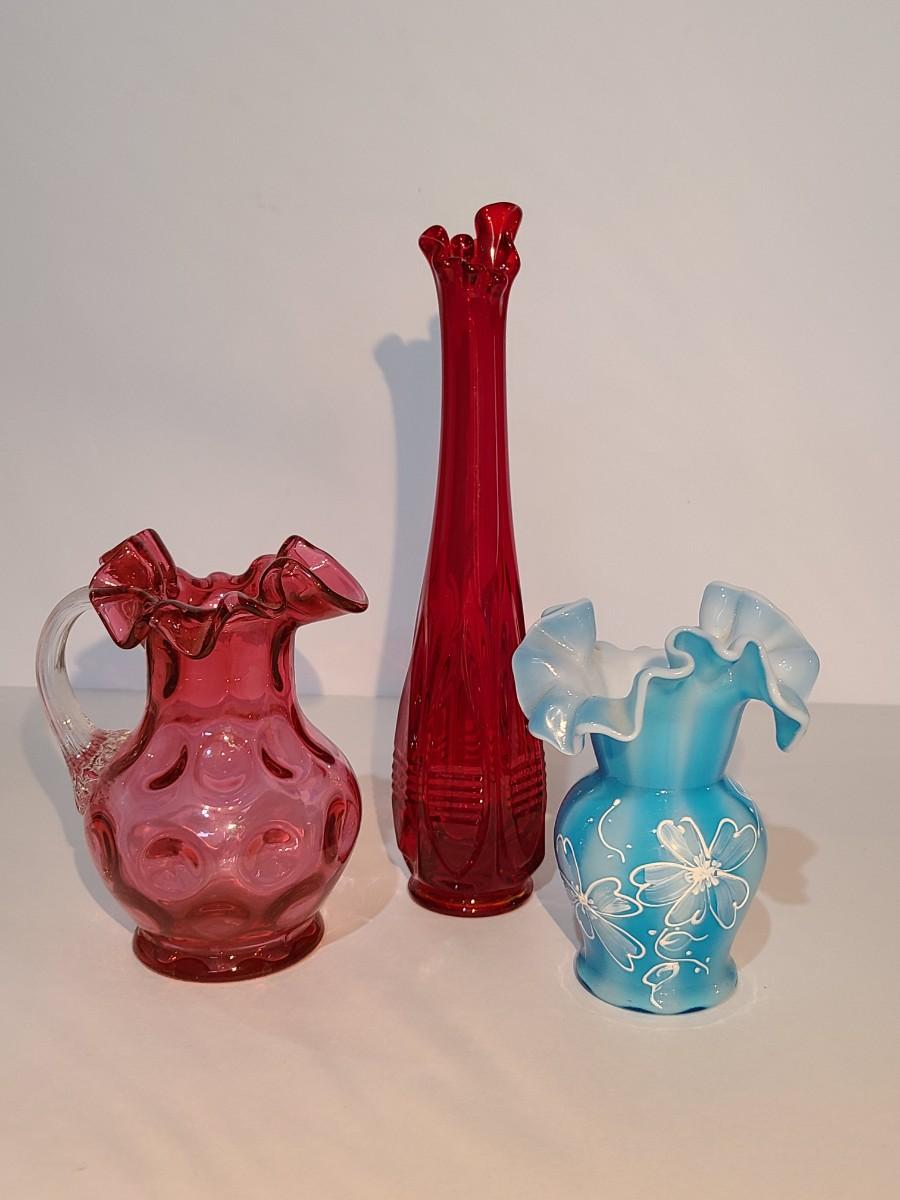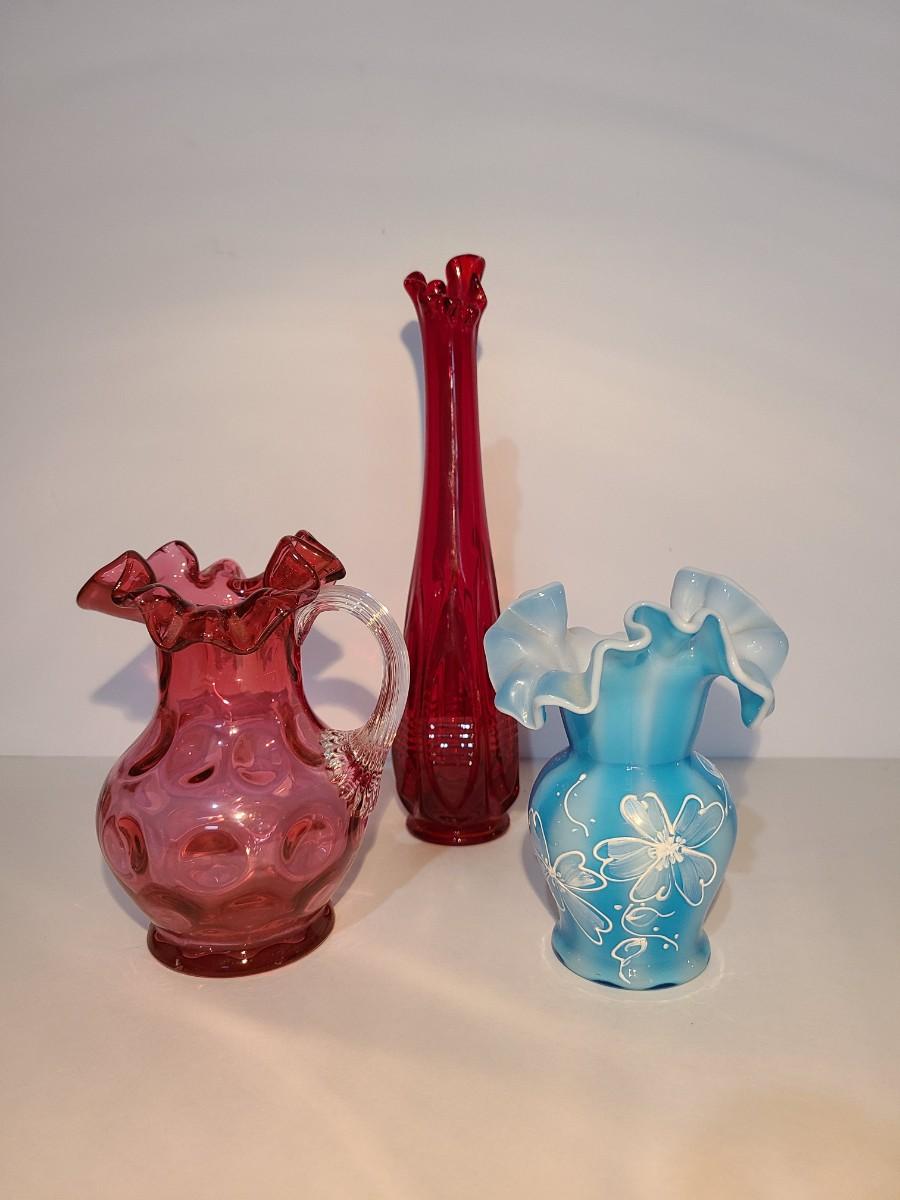 LOT 15: Fenton Red MCM Vase and More