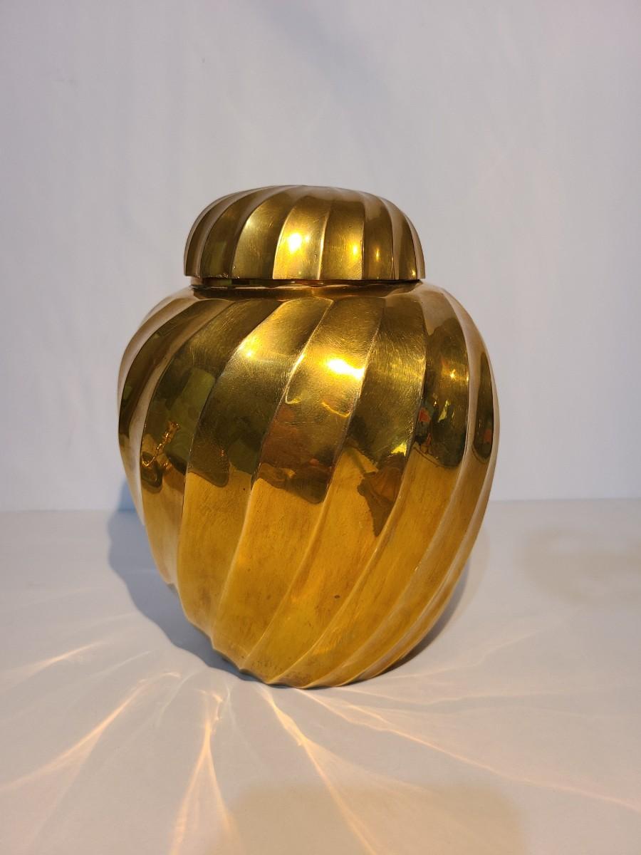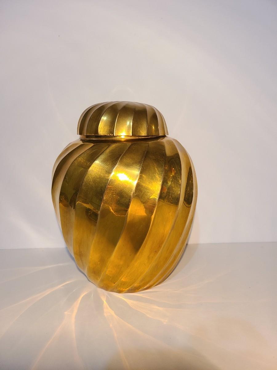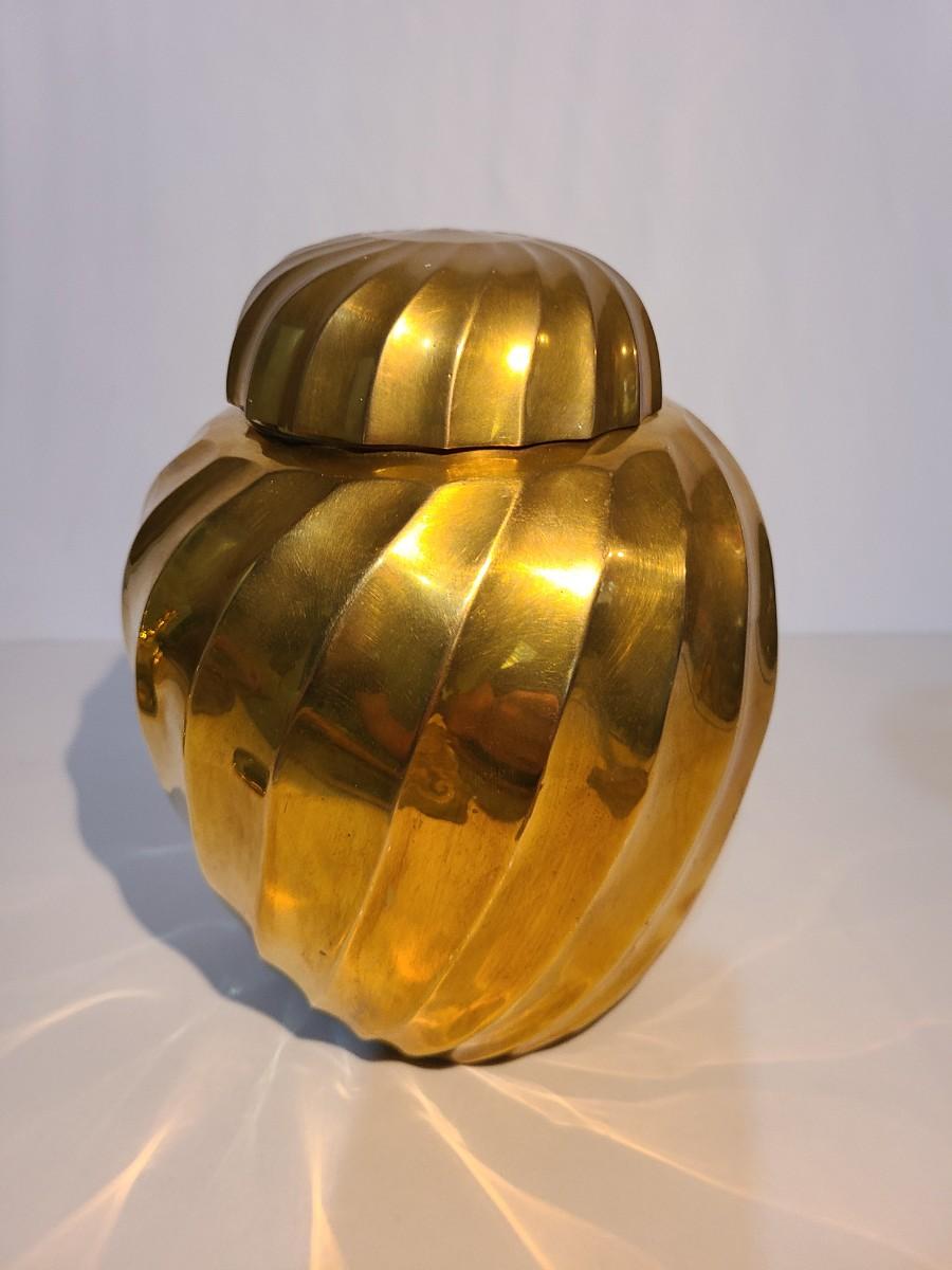LOT 16: Vintage Heavy Solid Brass Ginger Jar/Urn (Hollywood Regency Style)