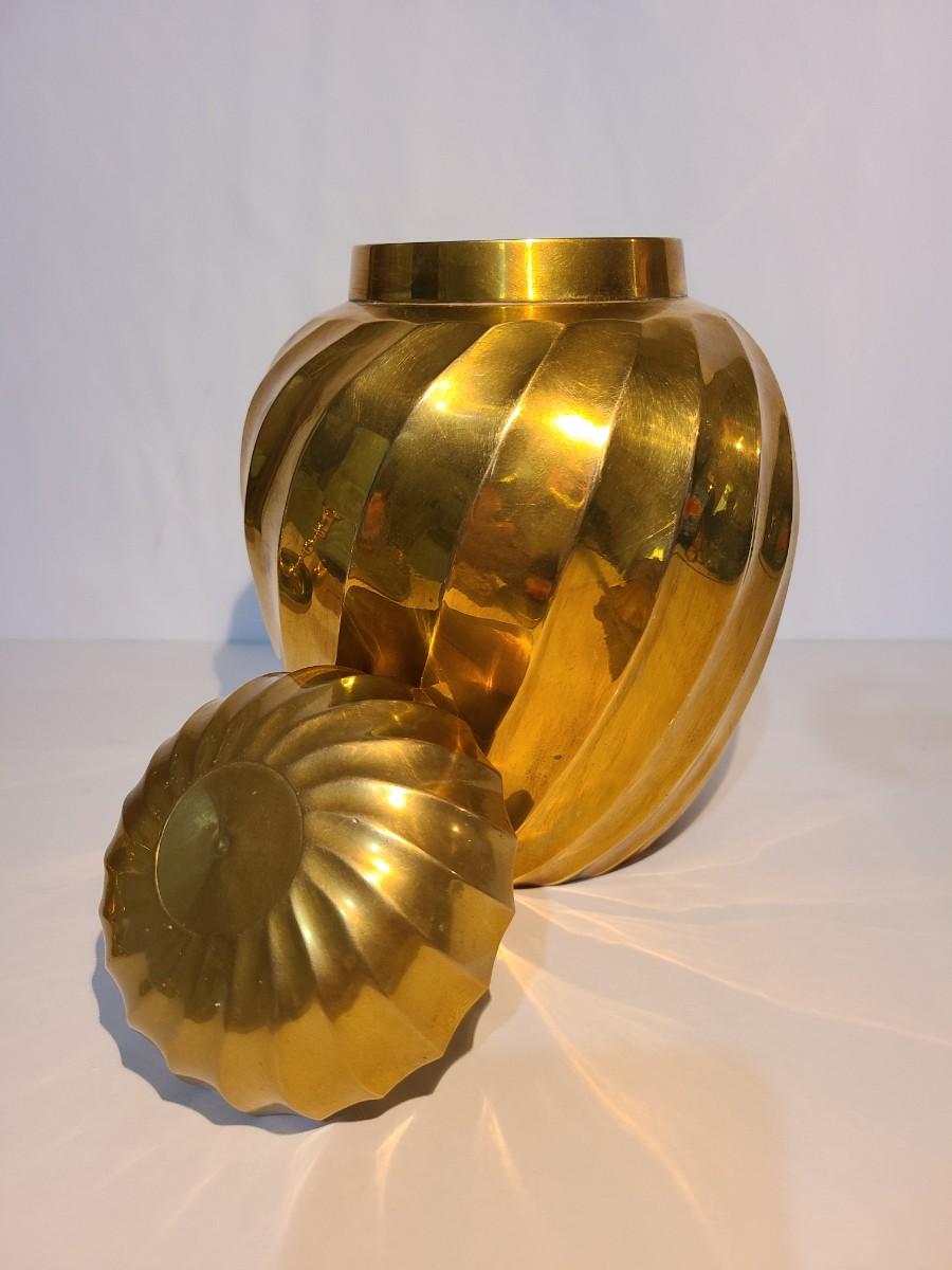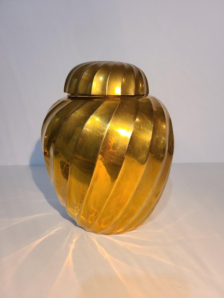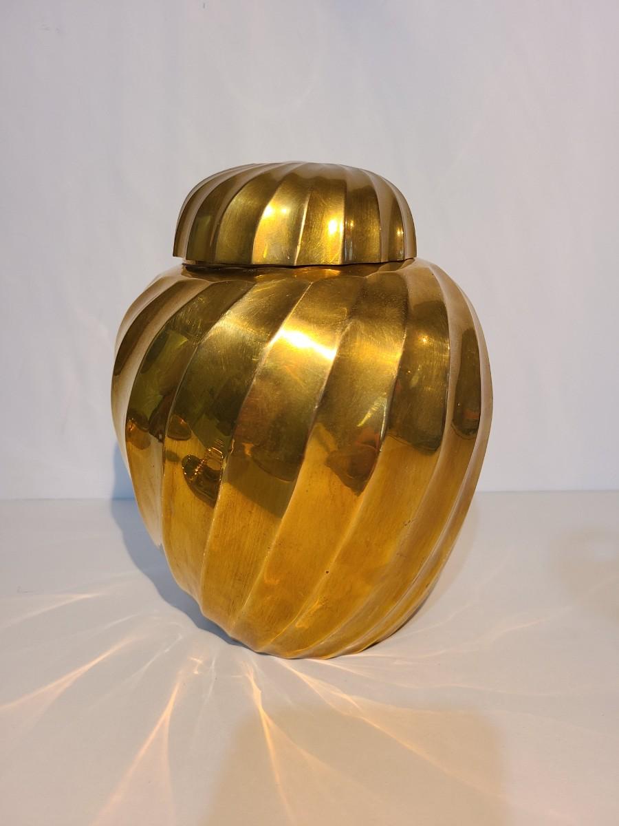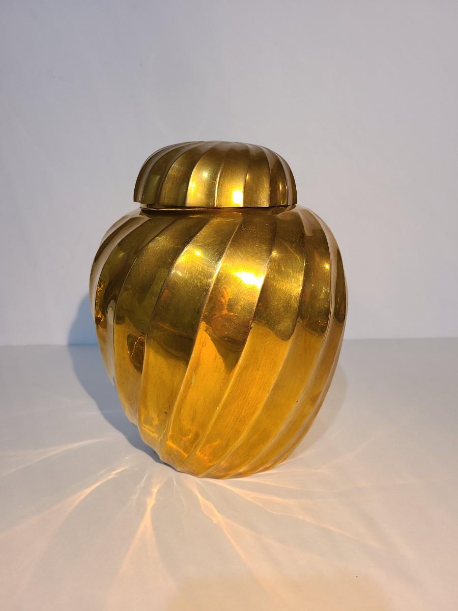 LOT 16: Vintage Heavy Solid Brass Ginger Jar/Urn (Hollywood Regency Style)
